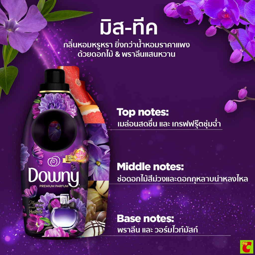 ดาวน์นี่ พรีเมียม เพอร์ฟูม น้ำยาปรับผ้านุ่มสูตรเข้มข้นพิเศษ กลิ่นมิสทีค 470 มล. แพ็ค 2+1