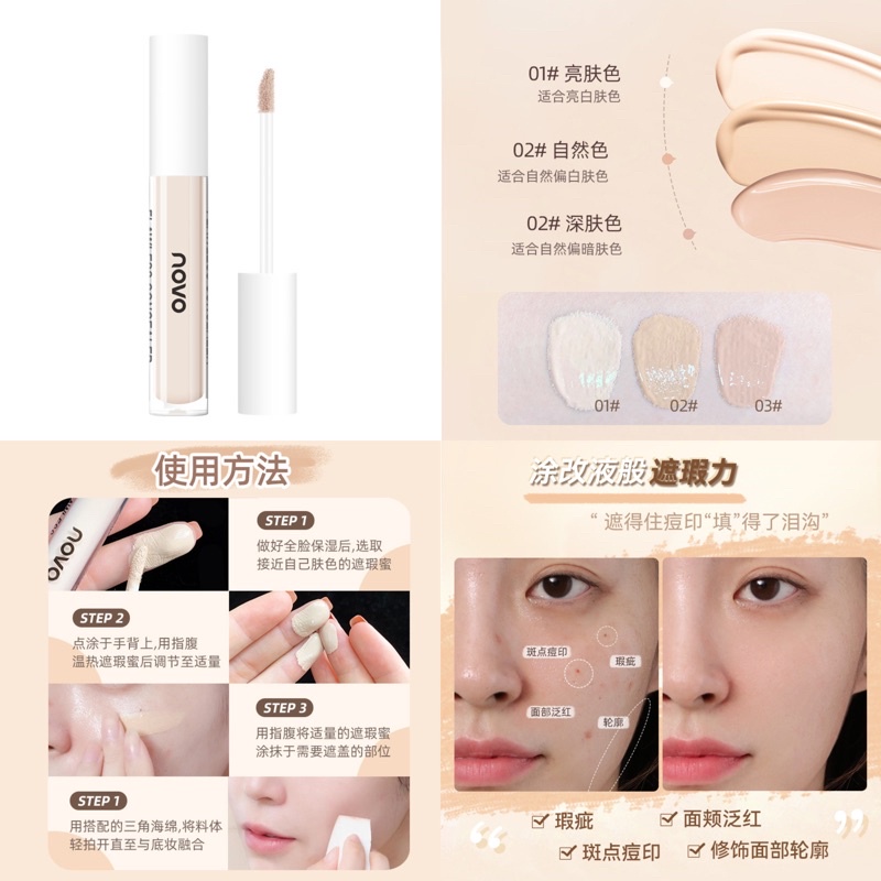 5548 (ใหม่/แท้) NOVO คอนซีลเลอร์ concealer เนื้อเนียน ปกปิดคล้ำใต้ตา รอยแดง รอยสิว ผิวชุ่มชื้น กันน้ำ
