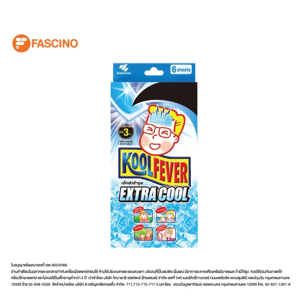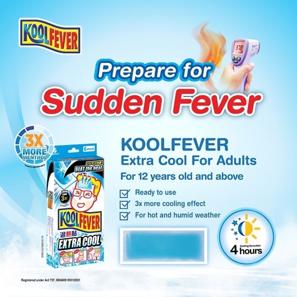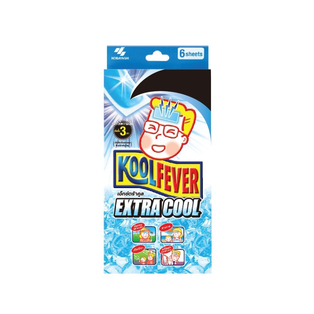 Kool Fever คูลฟีเวอร์ แผ่นเจลลดไข้ สูตรเย็นพิเศษ ลดไข้ ประคบเย็น เมื่อมีไข้ 6 ชิ้น