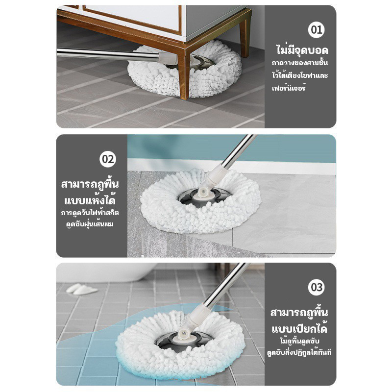 YTL ไม้ถูพื้น ไม้ม็อบถูพื้น ไม้ถูพื้นหมุนได้ 360 องศา ไม้ถูพื้นสแตนเลส ใช้กับถังปั่น ผ้าถูพื้นไมโครไฟเบอร์