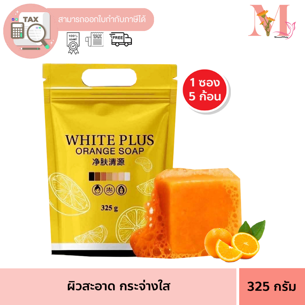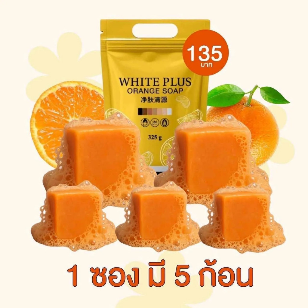 White Plus Orange Sope สบู่ ไวท์ พลัส ออเรนท์ โซป 1 ถุง 5 ก้อน ปริมาณ 325 กรัม.
