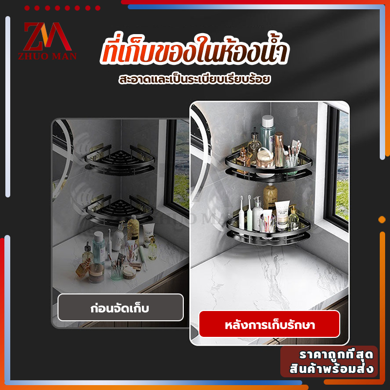 นวางของในห้องน้ำ ชั้นวางเข้ามุม ที่วางของเข้ามุมสามเหลียม ไม่ต้องเจาะผนัง รับน้ำหนักได้ดี วัสดุเหล็กหนา