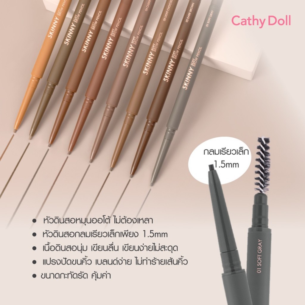 🔥แท้/ถูกที่สุด/ไลฟ์ทุกวัน🔥 Cathy Doll SKINNY SOFT BROW PENCIL หัวเล็ก1.5mm สกินนี่ซอฟท์บราวเพ็นซิล 0.06g #เขียนฟุ้งสายเ