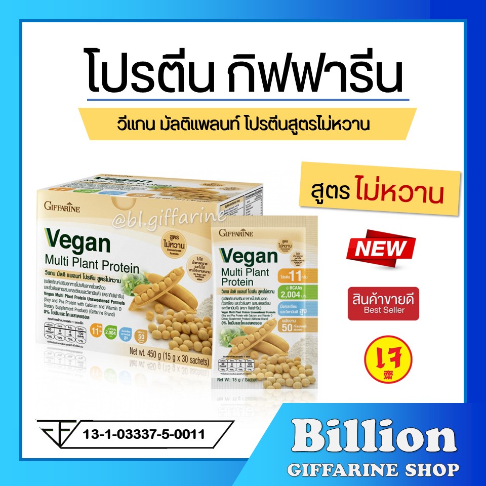 [ ส่งฟรี ] โปรตีนพืช โปรตีนกิฟฟารีน ใหม่!! (สูตร ไม่หวาน) วีแกน มัลติ แพลนท์ โปรตีน Vegan Multi Plant Protein Giffarine