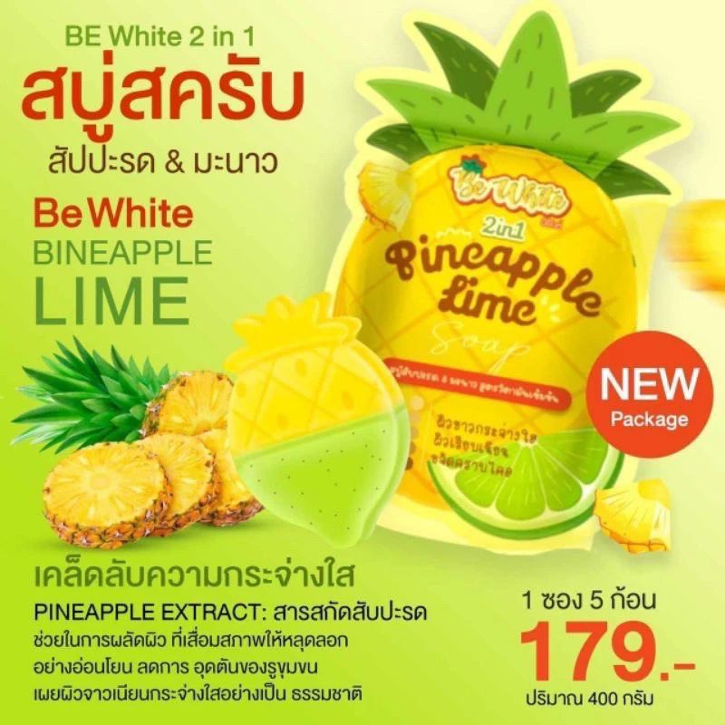 สบู่สับปะรด & มะนาว Be White ขนาด 400 กรัม (1ห่อ มี 5 ก้อน)