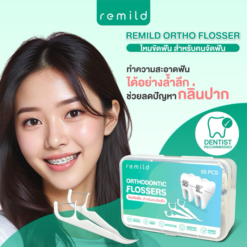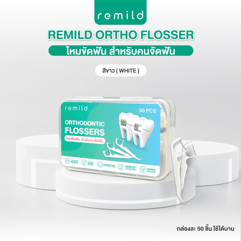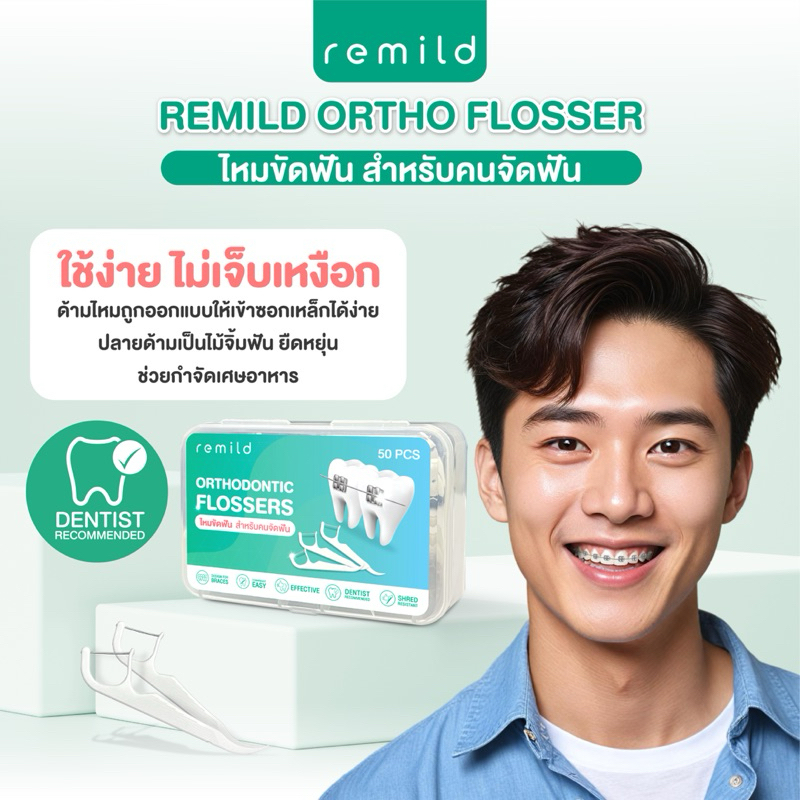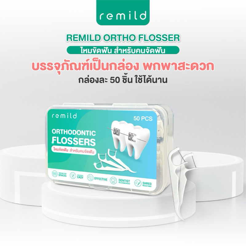 New package 🦷 Remild Ortho flosser ไหมขัดฟัน สำหรับคนจัดฟัน แบบด้ามจับ ออกแบบเพื่อคนจัดฟัน 50 ชิ้น/กล่อง