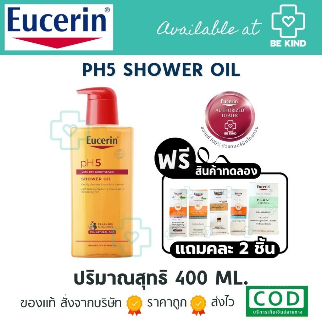 [ฟรีคละ 2 ชิ้น] Eucerin pH5 VERY DRY SENSITIVE SKIN SHOWER OIL 400 ML. ผลิตภัณฑ์ทำความสะอาดผิวกายสูตรผสมน้ำมัน