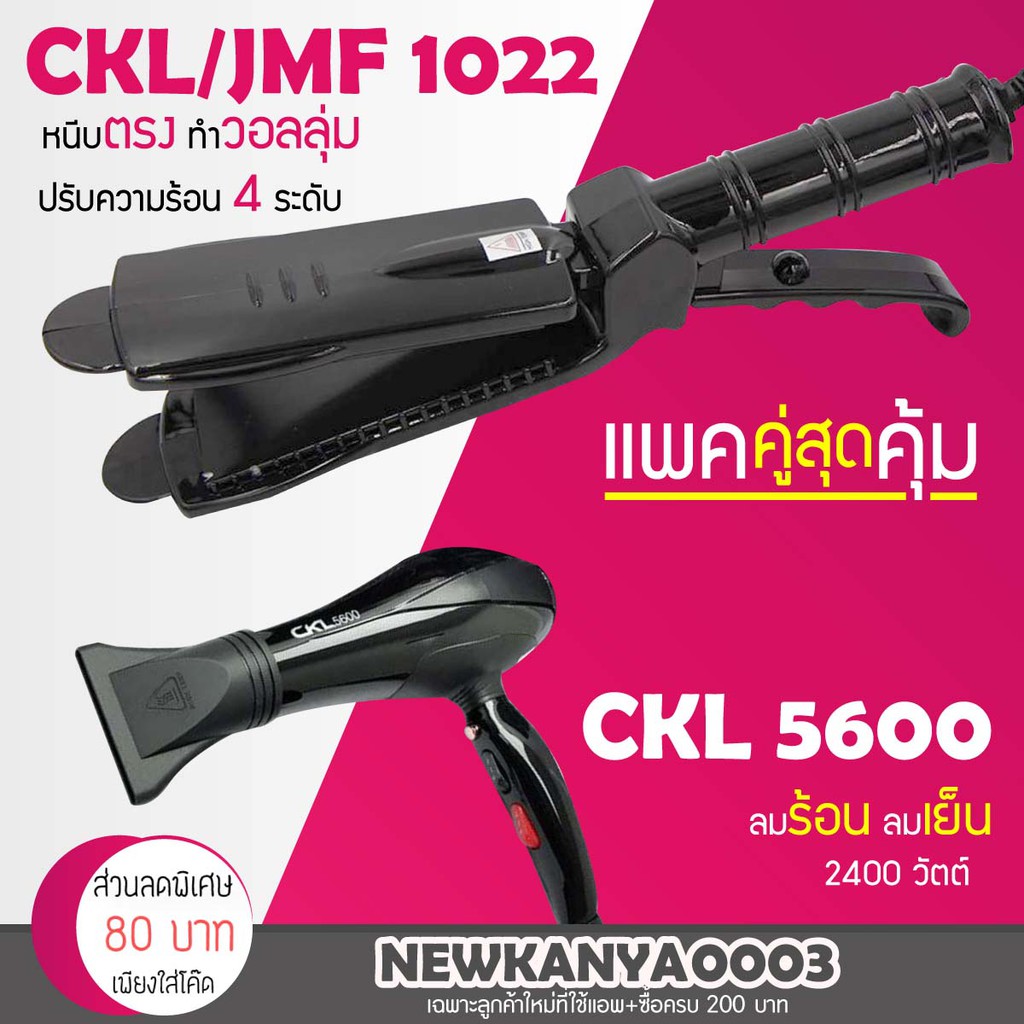 LIC 🔥 แพ็คคู่สุดคุ้ม เครื่องหนีบผม CKL / JMF 1022 ที่หนีบผม หนีบตรง หนีบเงา+ไดร์เป่าผม เครื่องเป่าผม ท ี่เป่าผม CKL 5600