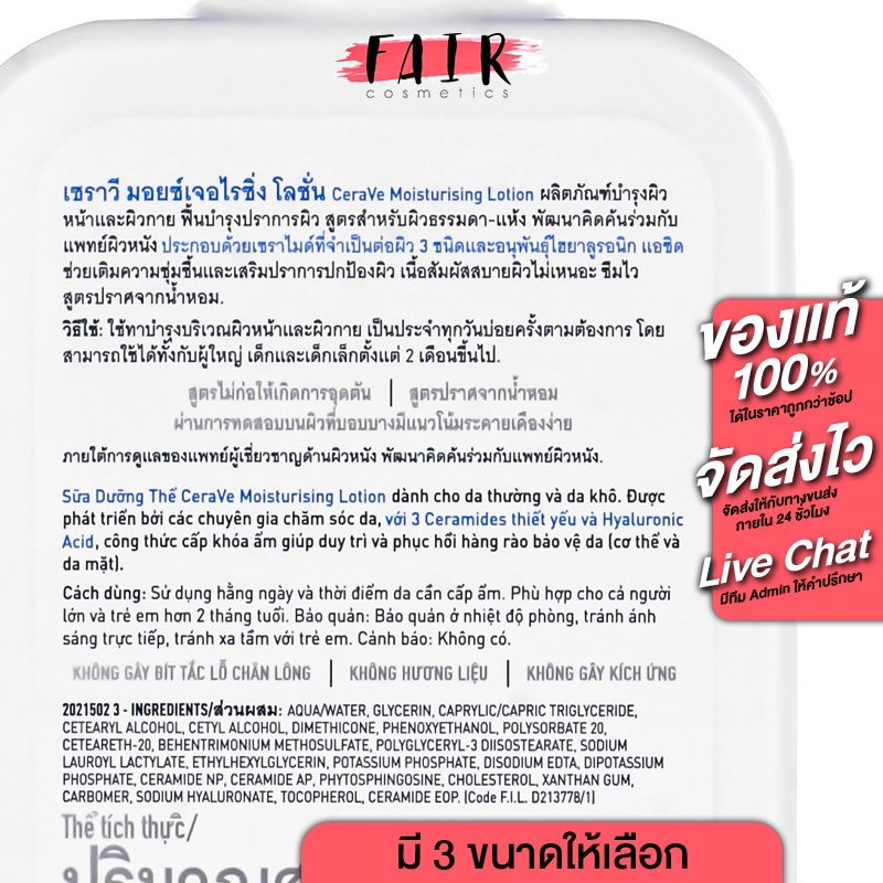 CeraVe Moisturising Lotion เซราวี มอยซ์เจอไรซิ่ง โลชั่น - เนื้อโลชั่น บางเบา ฟื้นบำรุงผิว