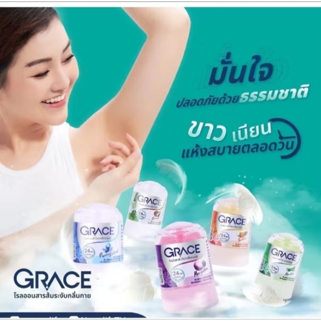 ส่งฟรี/มีไลฟ์ (1ชิ้น)Grace Crystal deoderant สารส้มระงับกลิ่นกาย เกรซ ทารักแร้ดับกลิ่นเต่า 70 กรัม