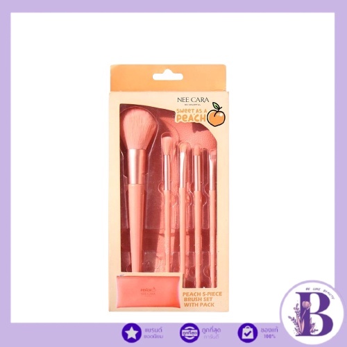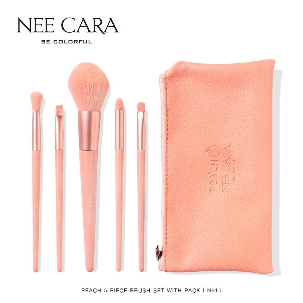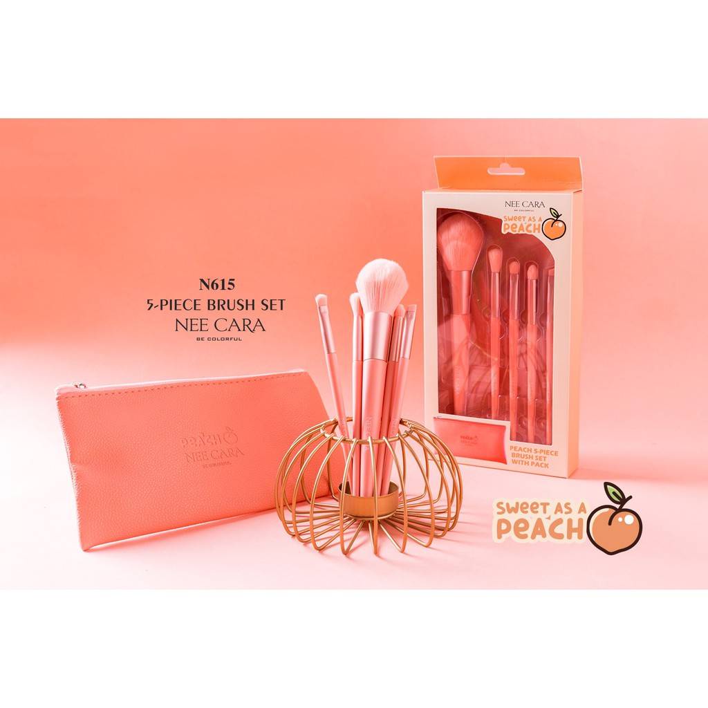 🍑N615🍑 NEE CARA Peach 5-Piece Brush Set นีคาร่า ชุดแปรงแต่งหน้า เซ็ตแปรงแต่งหน้า ลูกพีช 5 ชิ้นพร้อมกระเป๋า