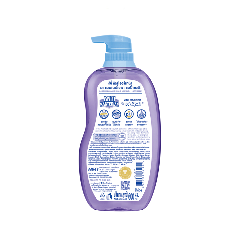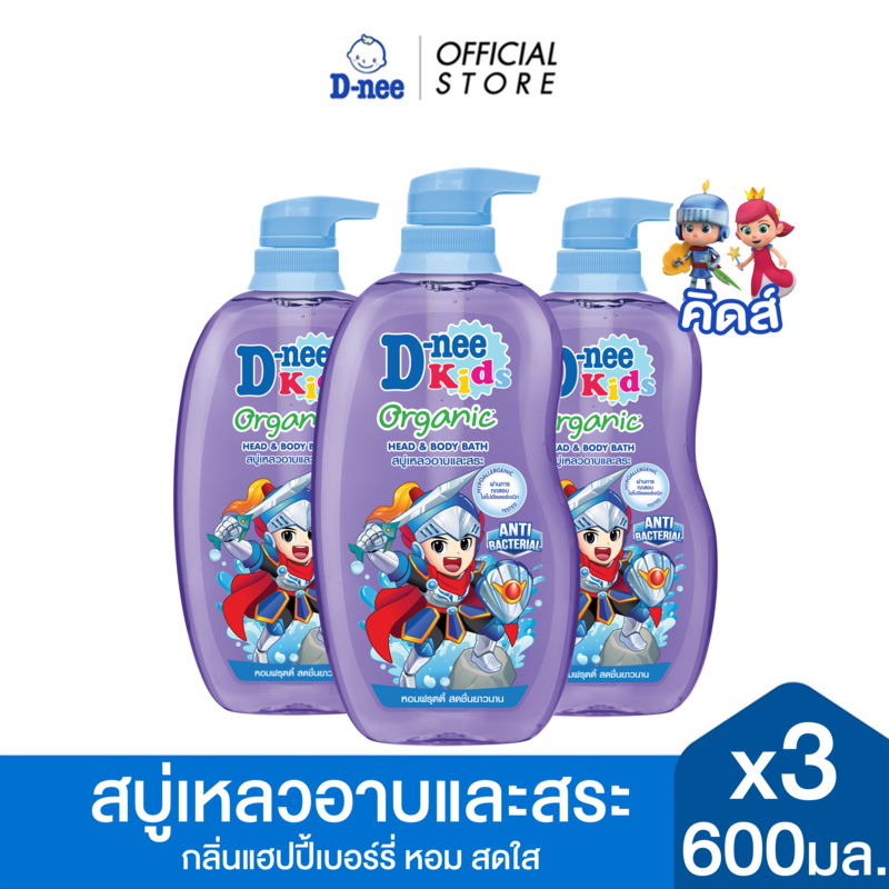 [แพ็ค3] D-nee ดีนี่ คิดส์ สบู่เหลวอาบและสระ กลิ่นแฮปปี้เบอร์รี่ 600 มล.x3, สีม่วง