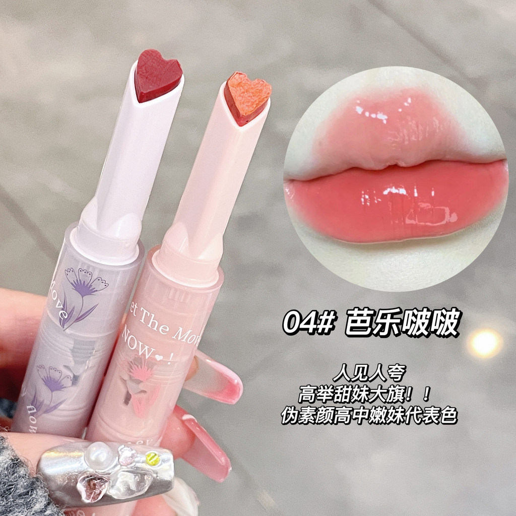 Gege Bear Flower Honey Solid Lip Gloss ลิปสติก Watery Light Jelly Heart Press ลิปสติก