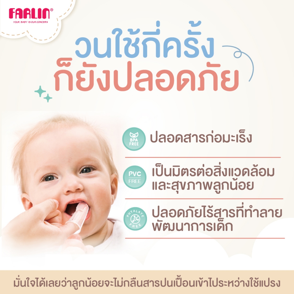 (ดูแลช่องปากลูกตั้งแต่แรกเกิด)Farlin แปรงซิลิโคนแบบสวมนิ้ว ใช้ง่าย มาตรฐานEU ไม่ปนเปื้อนใช้ซ้ำได้นาน