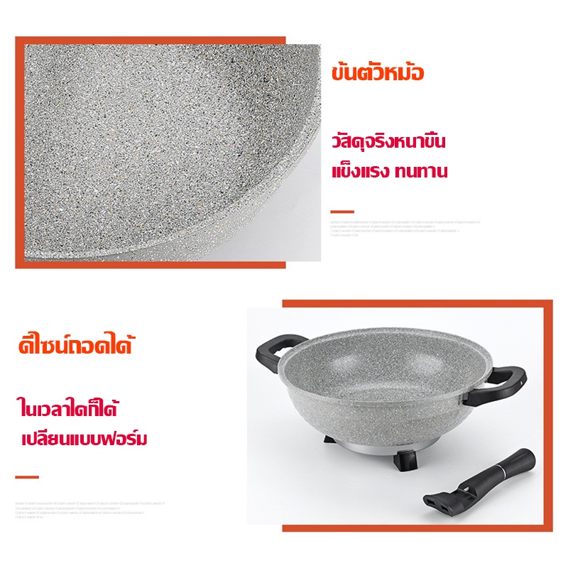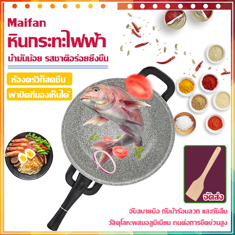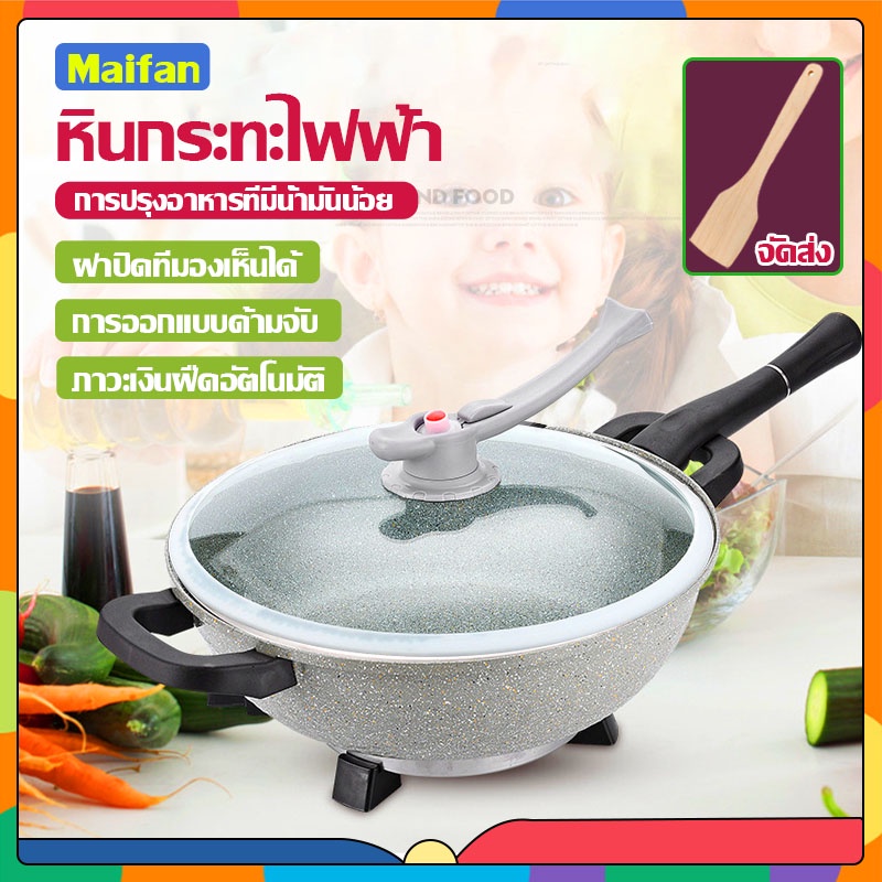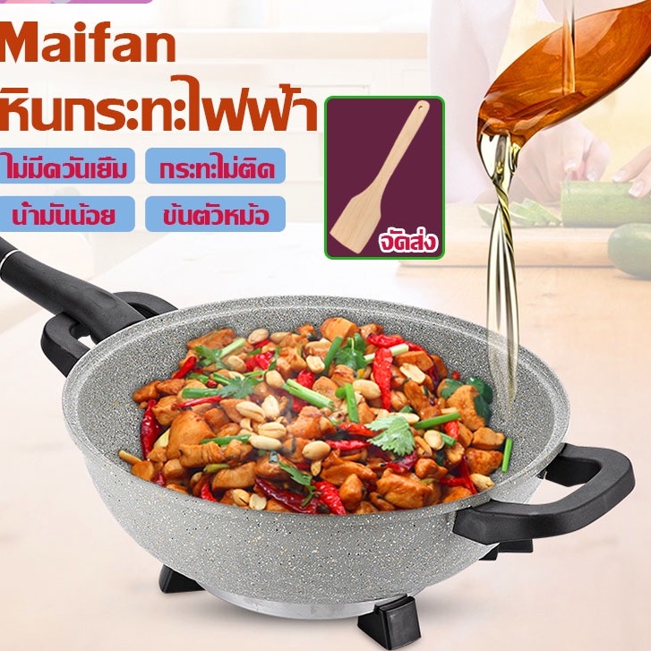 [new] กระทะไฟฟ้าทรงกลม 36CM ต้ม ผัด ทอดA333 กระทะไฟฟ้า ก ระทะเคลือบหินอ่อน กะทะเทฟล่อน ม้ออเนกประสงค์ Maifan