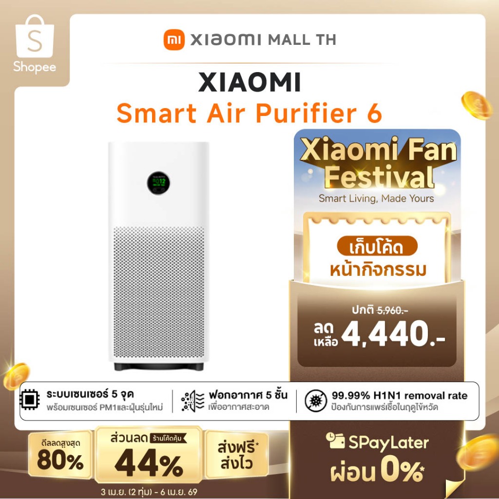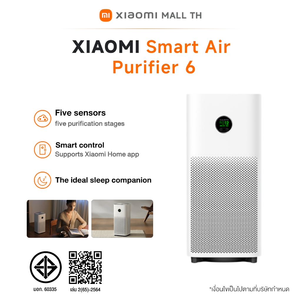 Xiaomi Mi Smart Air Purifier 6 เครื่องฟอกอากาศ เซ็นเซอร์ฝุ่น ขจัดเชื้อด้วย UVC ประกัน 1 ปี
