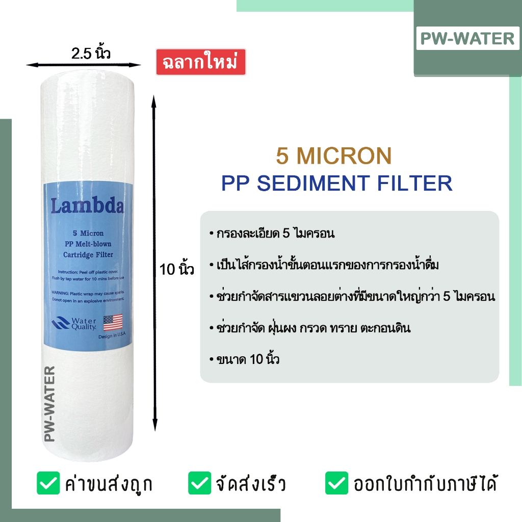 ไส้กรองน้ำ PP (Sediment) 10 นิ้ว x 2.5 นิ้ว 5 Micron ผิวเรียบ Lambda