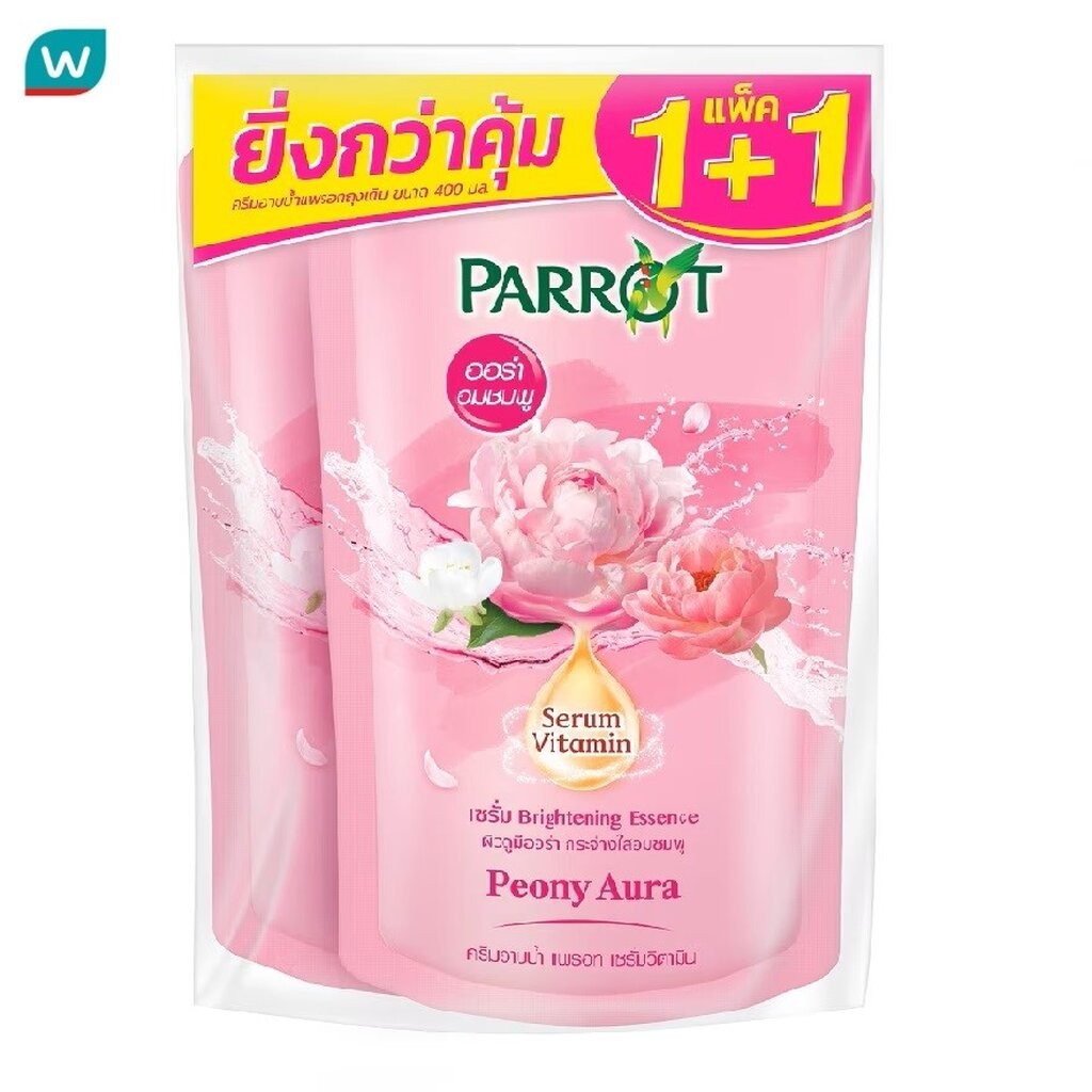 Parrot แพรอท ครีมอาบน้ำ เซรั่ม วิตามิน พีโอนี่ ออร่า ถุงเติม 400 มล. แพ็คคู่