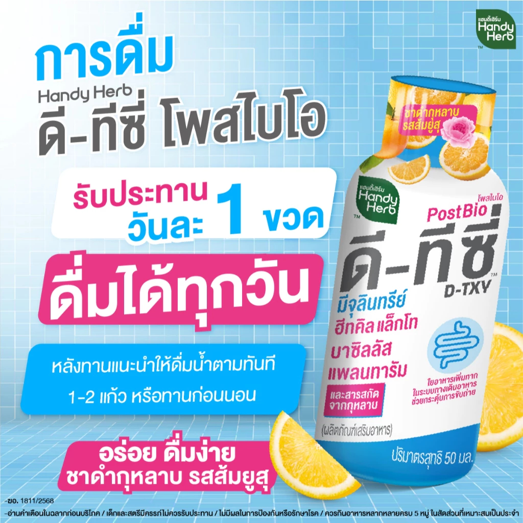HandyHerb D-TXY PostBio แฮนดี้เฮิร์บ ดี-ทีซี่ โพสไบโอ ไฟเบอร์ และชาดำกุหลาบรสส้มยูสุ