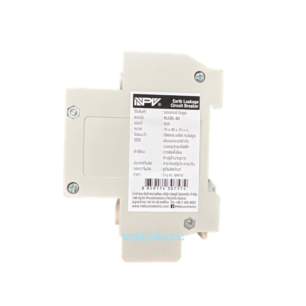เมนเบรกเกอร์กันดูด 63A NPV รุ่น KLCBL-63 มอก.909-2548