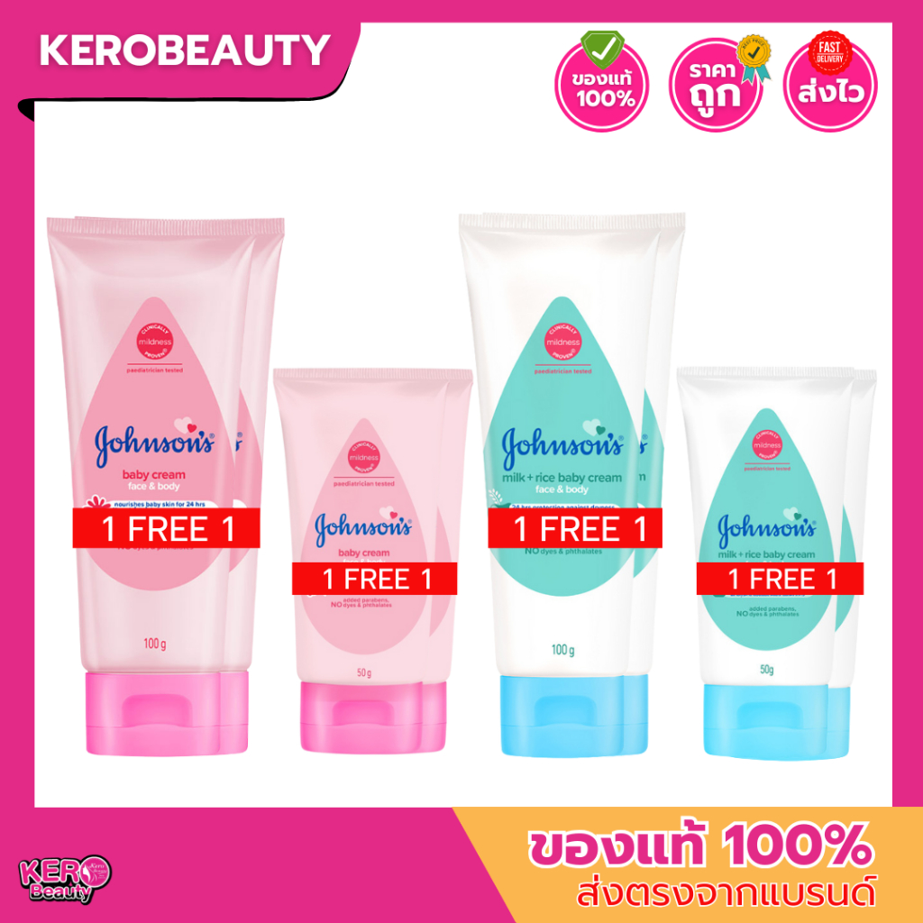[ 1แถม 1] Johnson's Baby Cream 50g./100g. จอห์นสัน เบบี้ ครีม 2 สูตร ผลิตภัณฑ์บำรุงผิวที่อ่อนละมุน