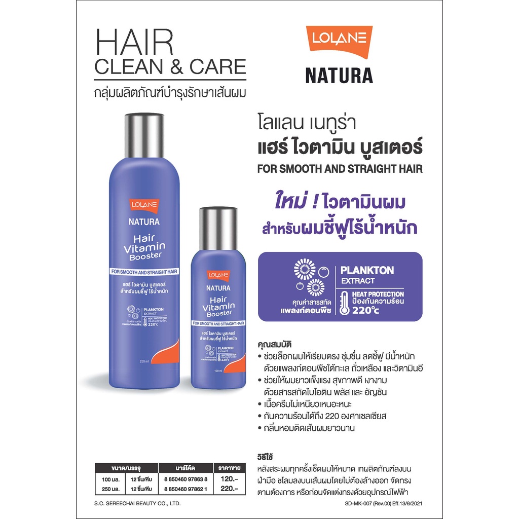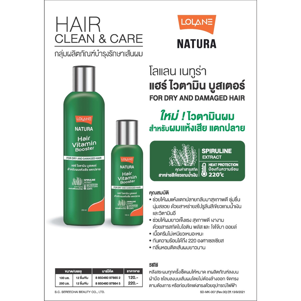 Lolane Natura Hair vitamin Booster 250ml. โลแลน เนทูร่าแฮร์ ไวตามิน 250มล.