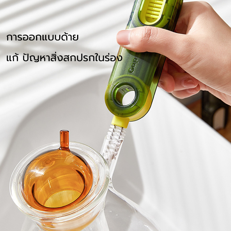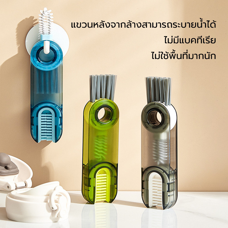 แปรงถ้วย 3ใน1 เขียว/สีเทา/น้ำเงิน ทำความสะอาดปากถ้วย แบบพกพา แปรงล้าง แปรงทําความสะอาดถ้วย