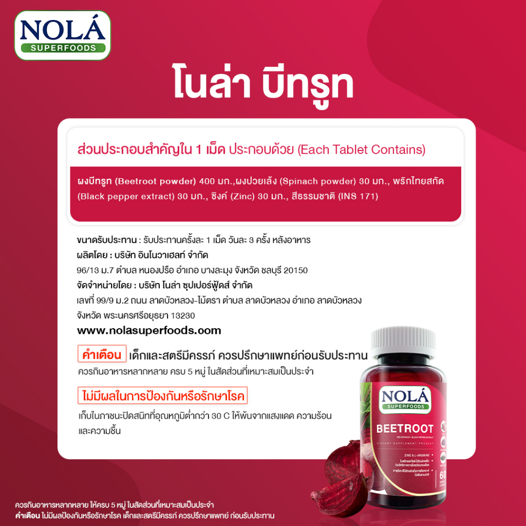 Nola Beetroot 60 Vegan Capsules - โนล่า บีทรูท ขนาด 60 วีแกนแคปซูล