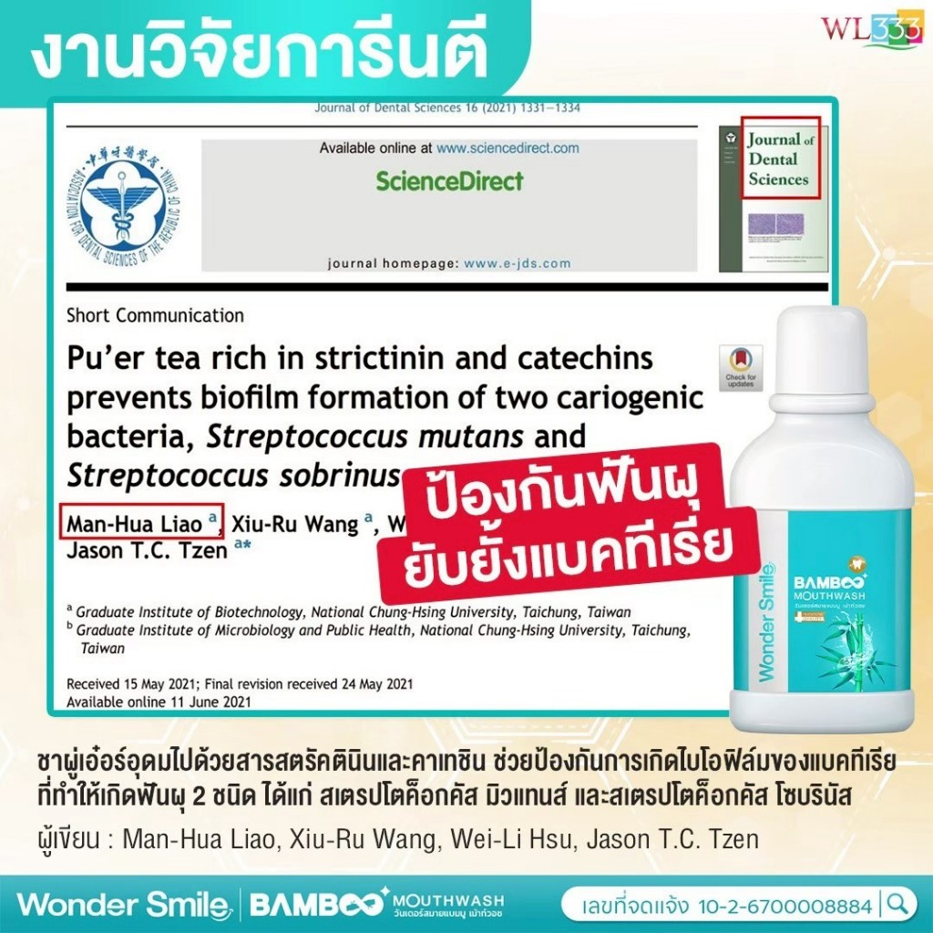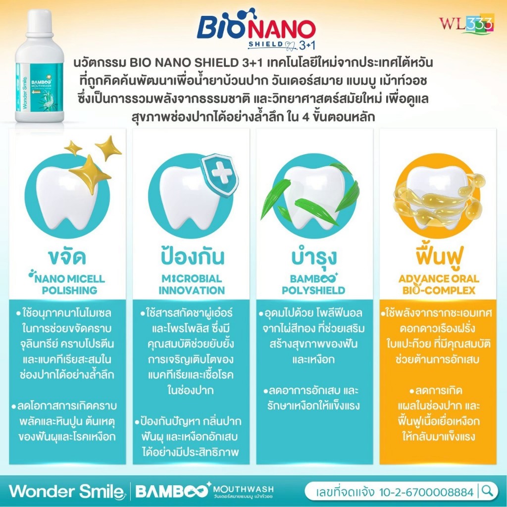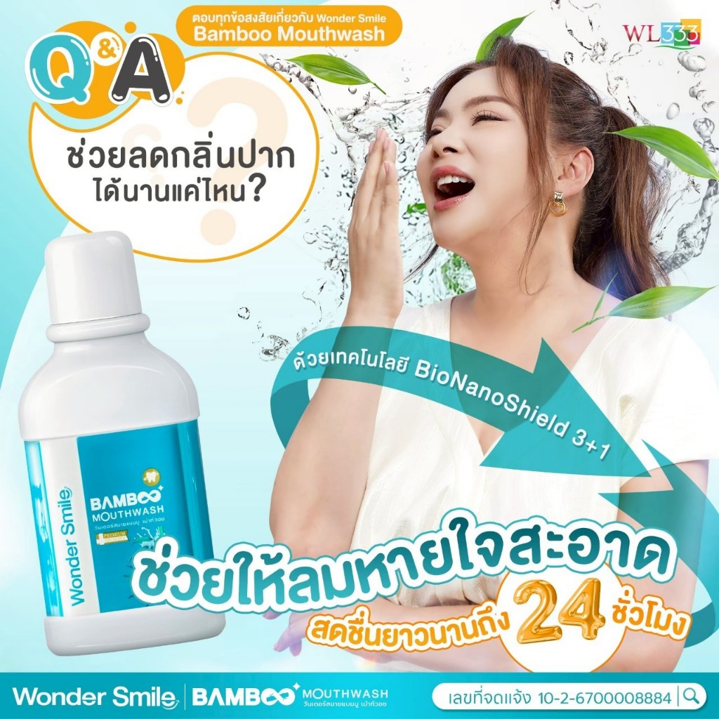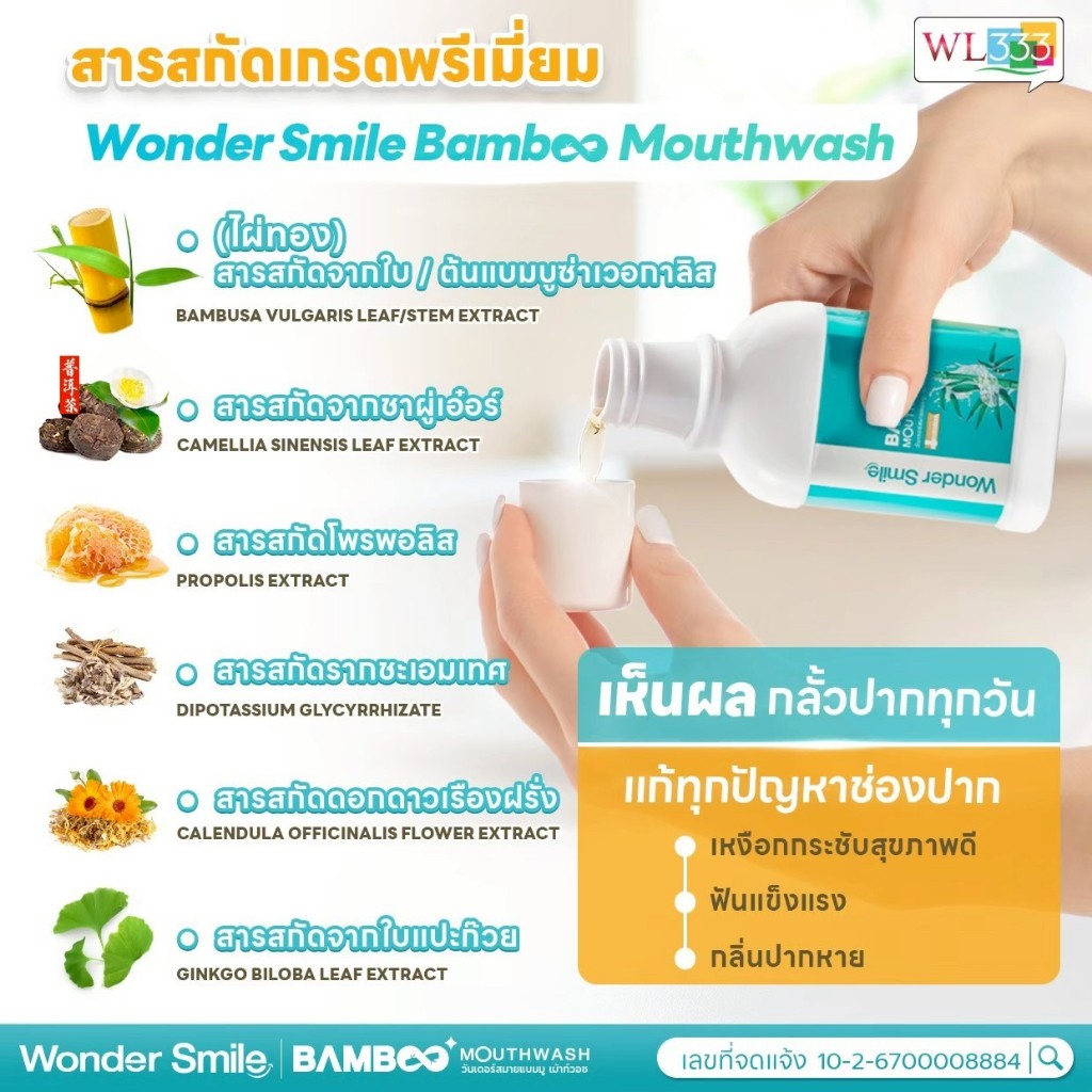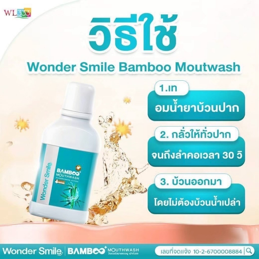 Wonder Smile Bamboo 2 แถม 1 น้ำยาบ้วนปาก ลดกลิ่นปาก น้ำลายบูด ลดคราบเหลือง ไม่แสบปาก AWL Mouthwash
