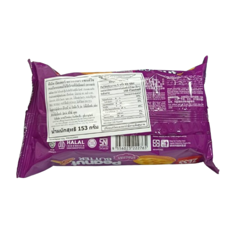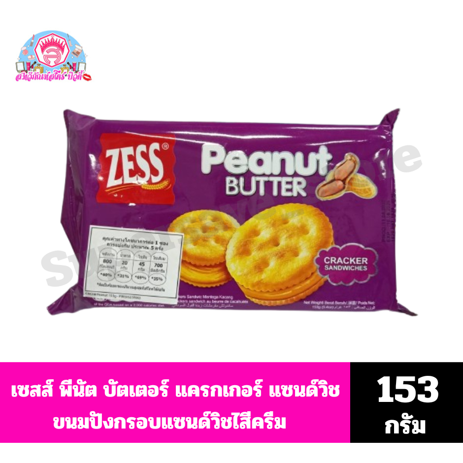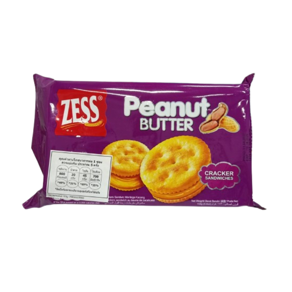 ZESS เซสส์ พีนัต บัตเตอร์ แครกเกอร์ แซนด์วิช ขนมปังกรอบแซนด์วิชไส้ครีมรสพีนัตบัตเตอร์ ขนาด 153 กรัม