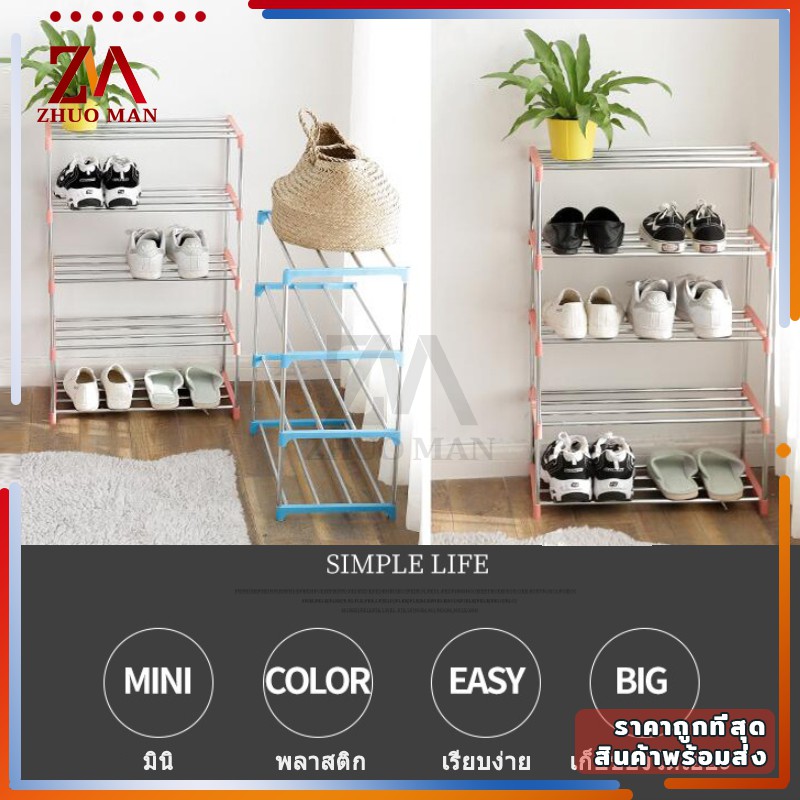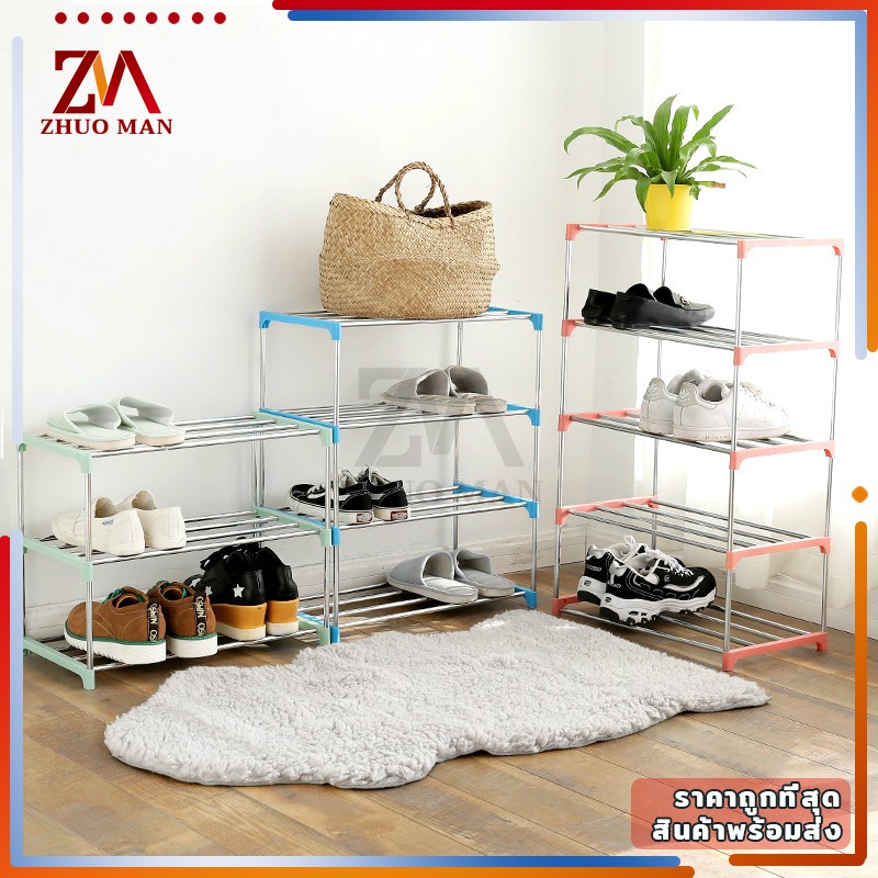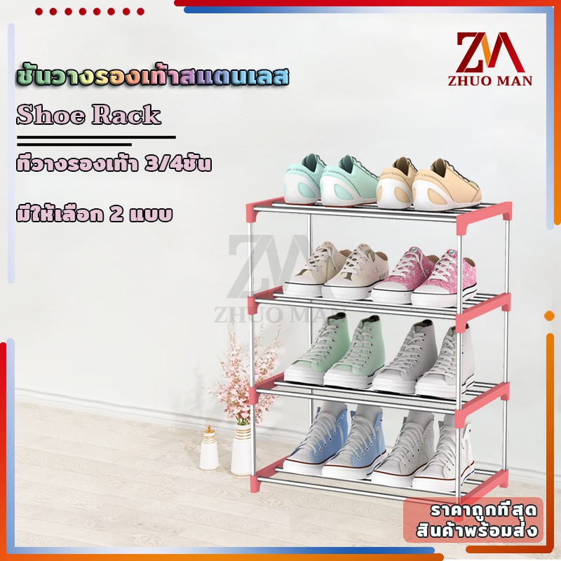 ชั้นวางรองเท้าสแตนเลส Stainless Shoe Rack ช่วยจัดระเบียบได้ง่าย ไม่แกะกะ ประหยัดพื้นที่ มีให้เลือก 3/4 ชั้น 3 สี