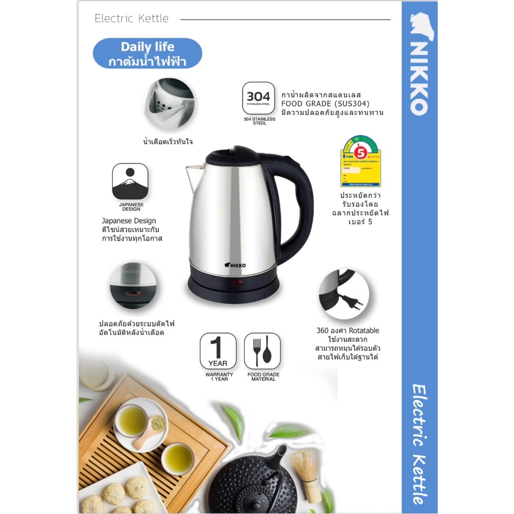 NIKKO เดลี่ไลฟ์ กาต้มน้ำไฟฟ้า 1.2ลิตร / 1.5ลิตร / 1.8ลิตร สแตนเลส304 รับประกัน 1 ปี (ประหยัดไฟเบอร์ 5)