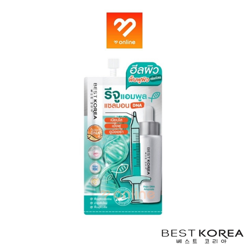 Best Korea Reju DNA Ampoule 8 ml. เบส โคเรีย แอมพูลเข้มข้นรีจู แซลมอน ฟื้นฟูผิวเร่งด่วน ให้ผิวนุ่มแน่น เด้งฟู