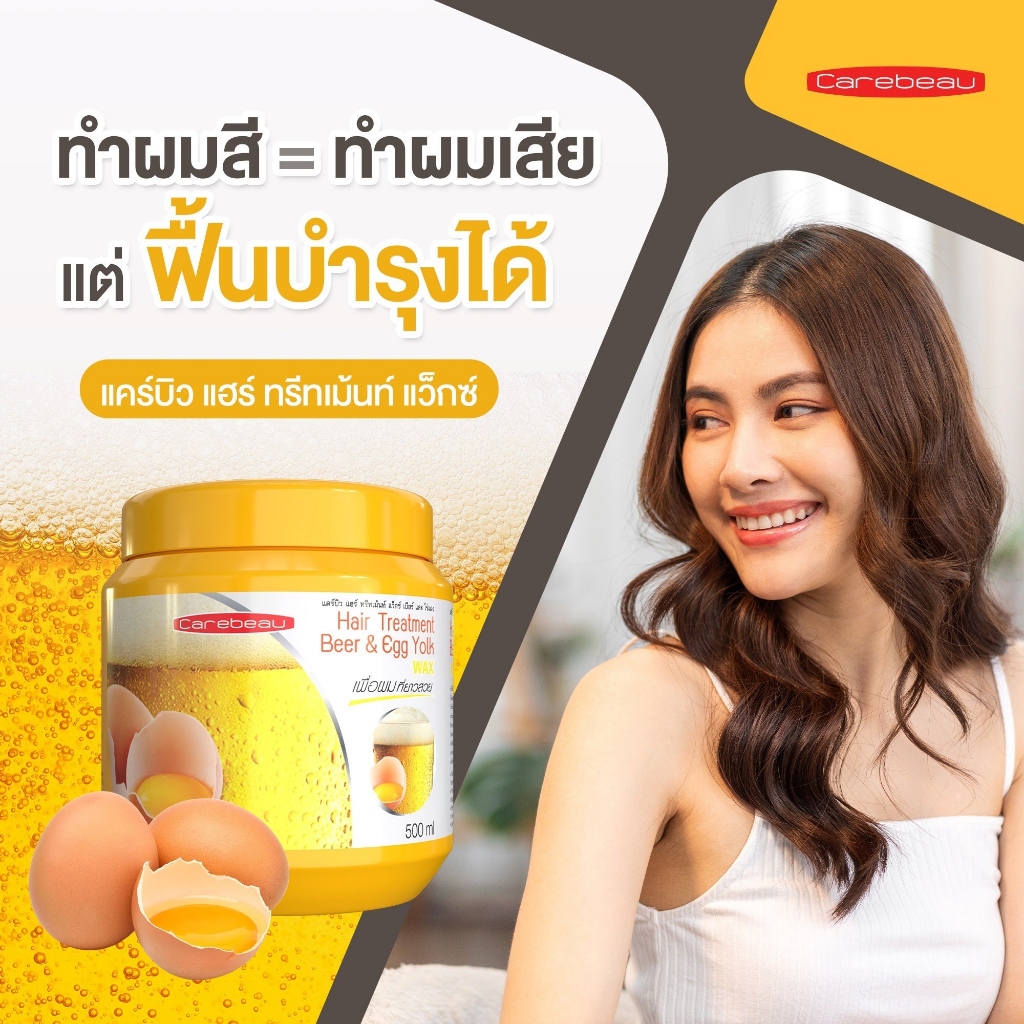 (แพ็ค 2 กระปุก) Carebeau แคร์บิว ทรีทเม้นท์ สูตรเบียร์และไข่แดง (500 ml.)