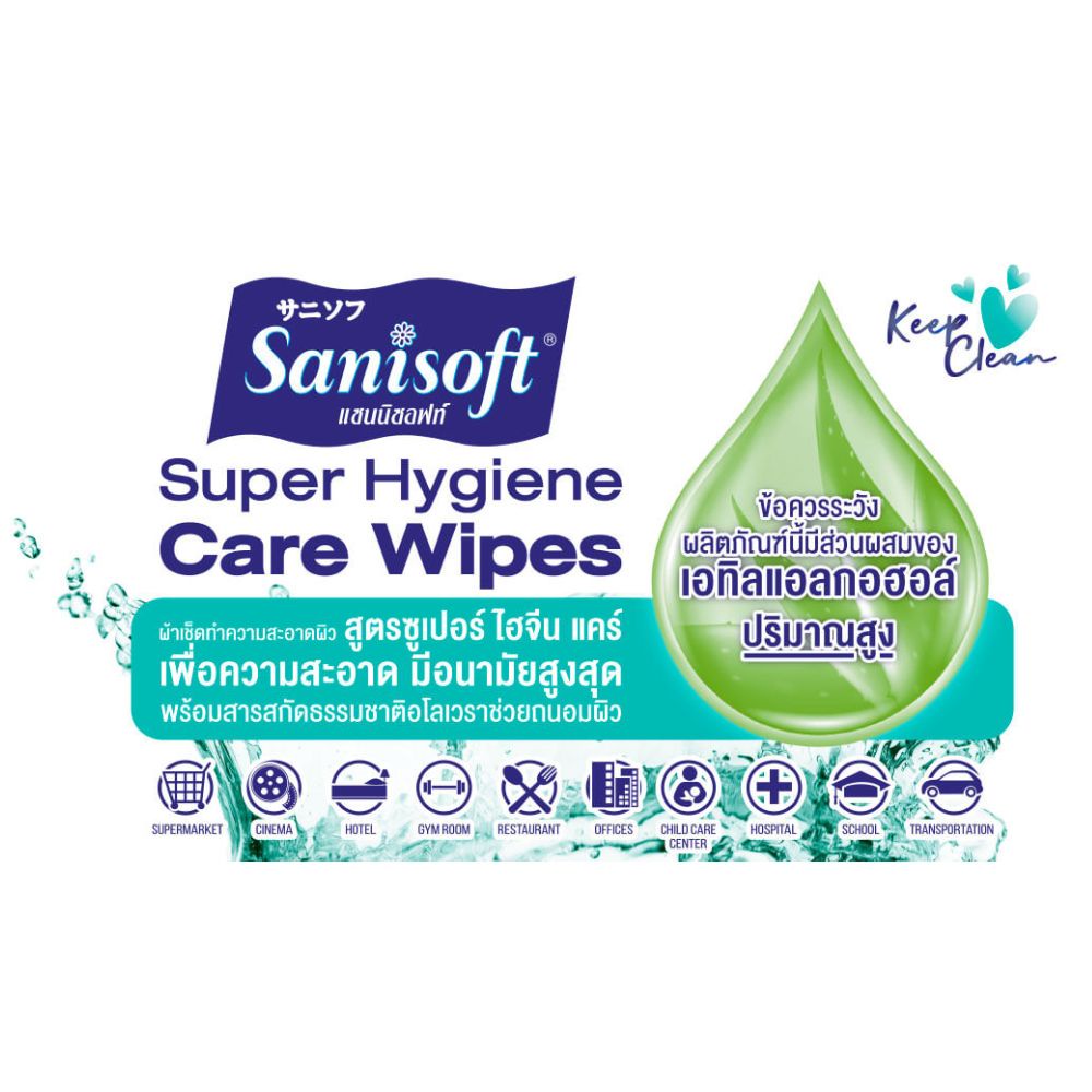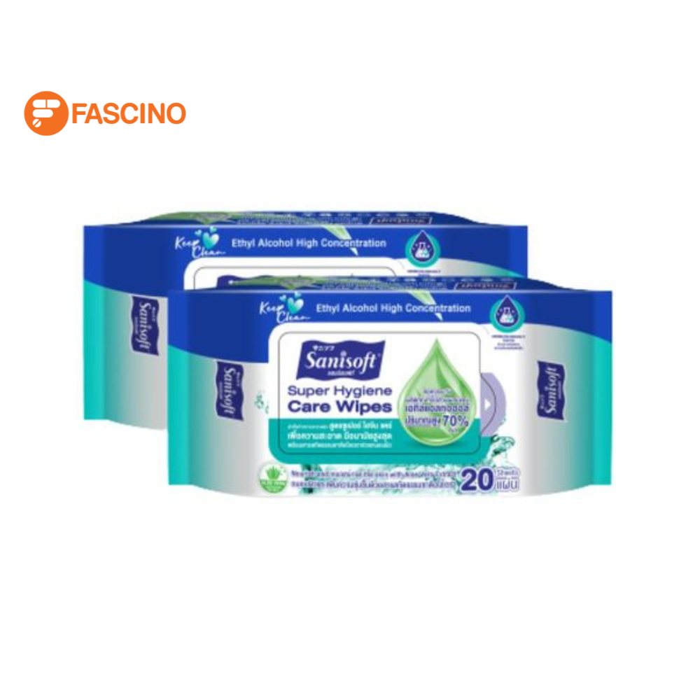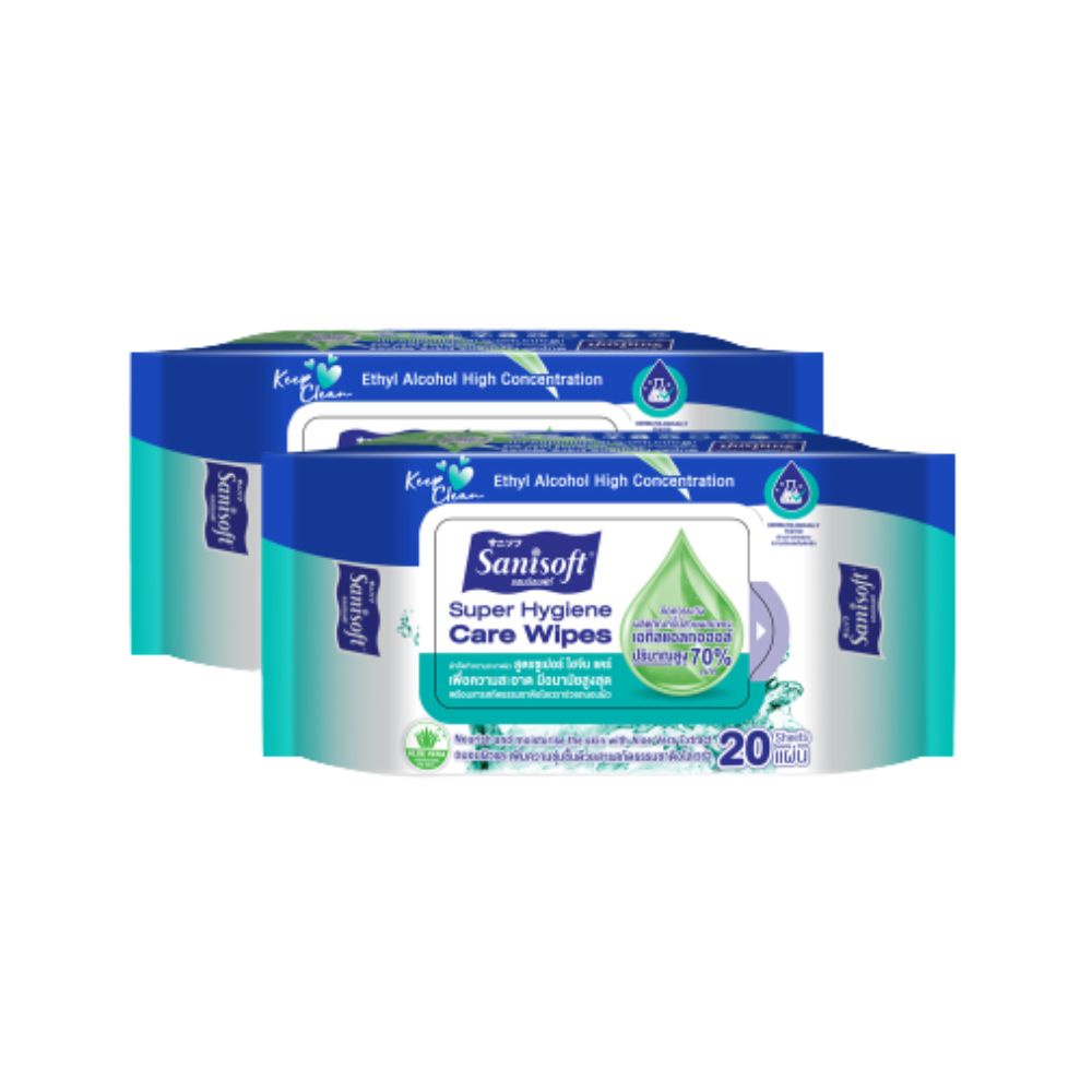 Sanisoft Super Hygiene Wet Wipes 20 แผ่น x2 ห่อ ซานิซอฟท์ ผ้าเช็ดทำความสะอาด สูตรอ่อนโยน