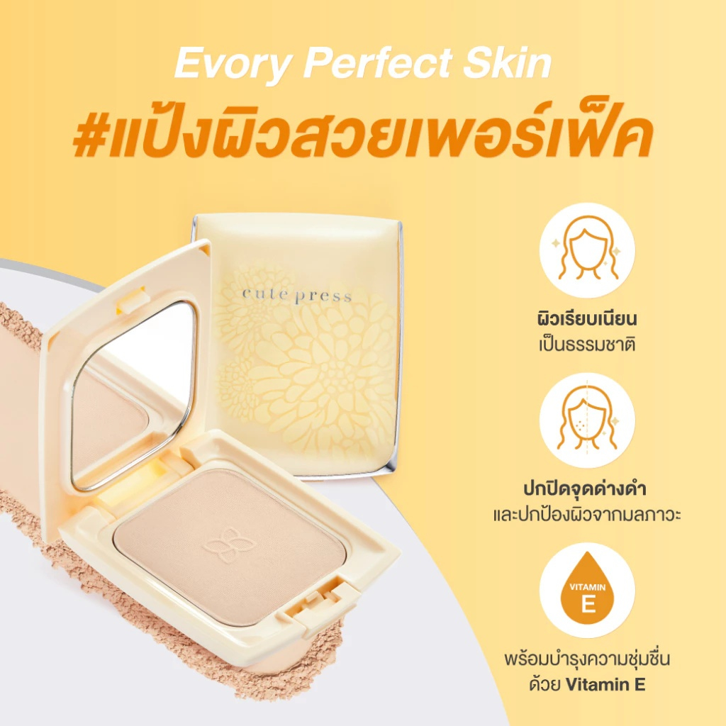 (1 ตลับ) Cute Press (ตลับเหลือง)แป้งเพอร์เฟ็ค อิเวอร์รี่ เพอร์เฟ็ค สกิน พลัส วิตามิน อี (13 g.)