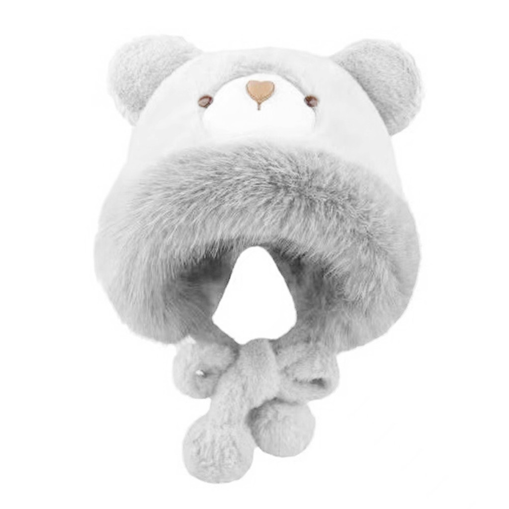 หมวกกันหนาว ขนเฟอร์นุ่มปิดหู หน้าหมี