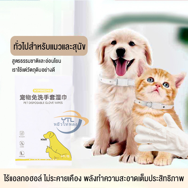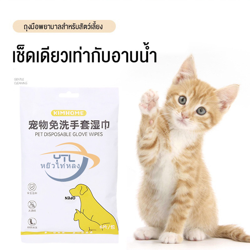 ถุงมืออาบน้ำแมว สุนัข แบบใช้แล้วทิ้ง 6ชิ้น/ห่อ ถุงมือกำจัดขนสัตว์เลี้ยง ทำความสะอาด ดับกลิ่น ไม่ต้องล้างน้ำ
