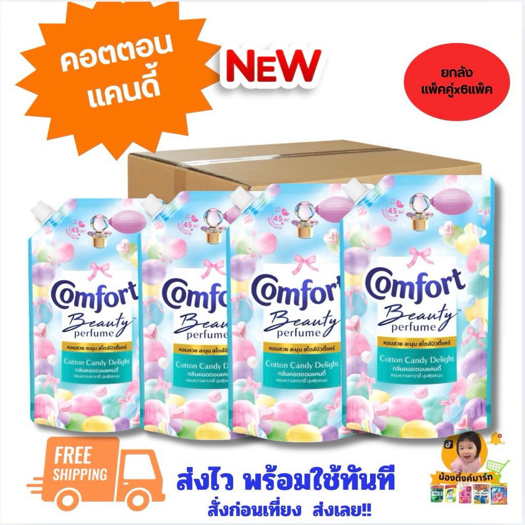 [ยกลัง6แพ็คx2ถุง]คอมฟอร์ทปรับผ้านุ่มเข้มข้นคอตตอนแคนดี้แพ็คคู่ 450ml.