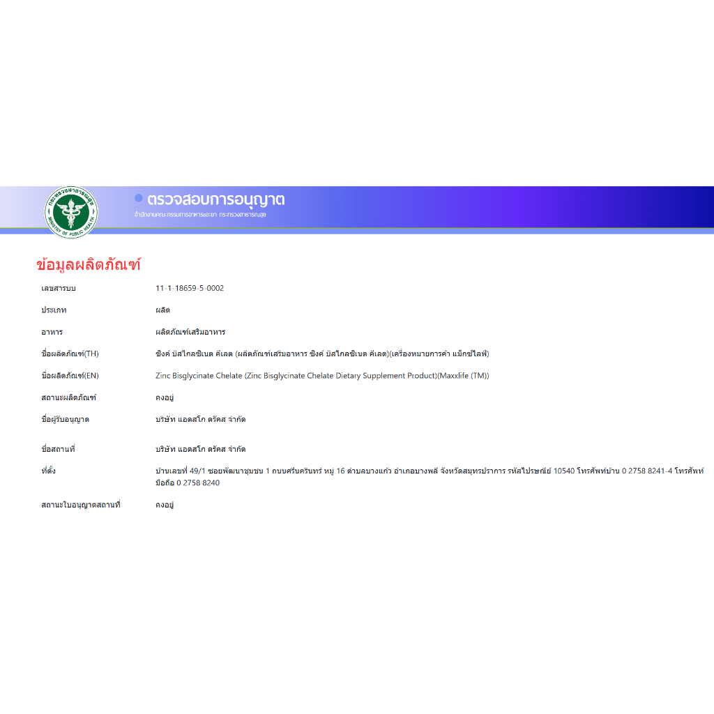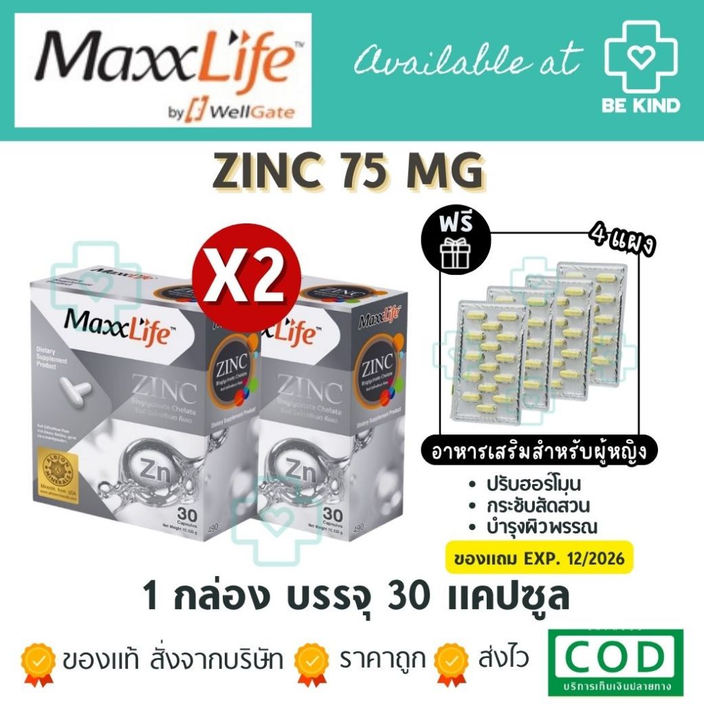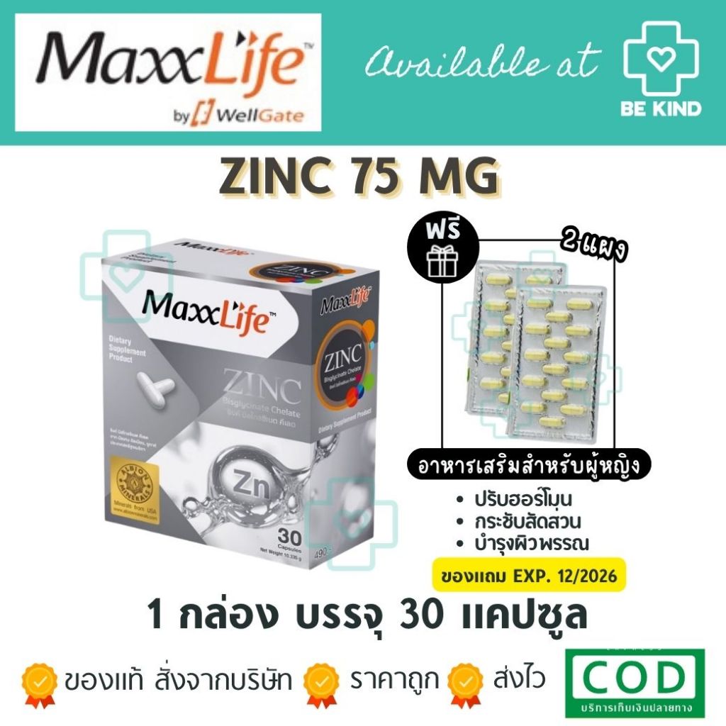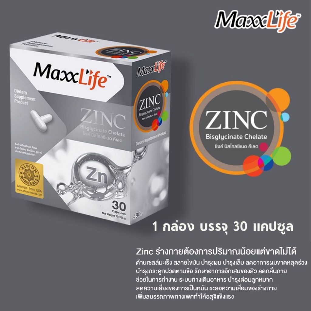 [เลือกจำนวนก่อนสั่งซื้อ] MAXXLIFE Zinc Bisglycinat 30 capsules. แมกซ์ไลฟ์ ซิงค์