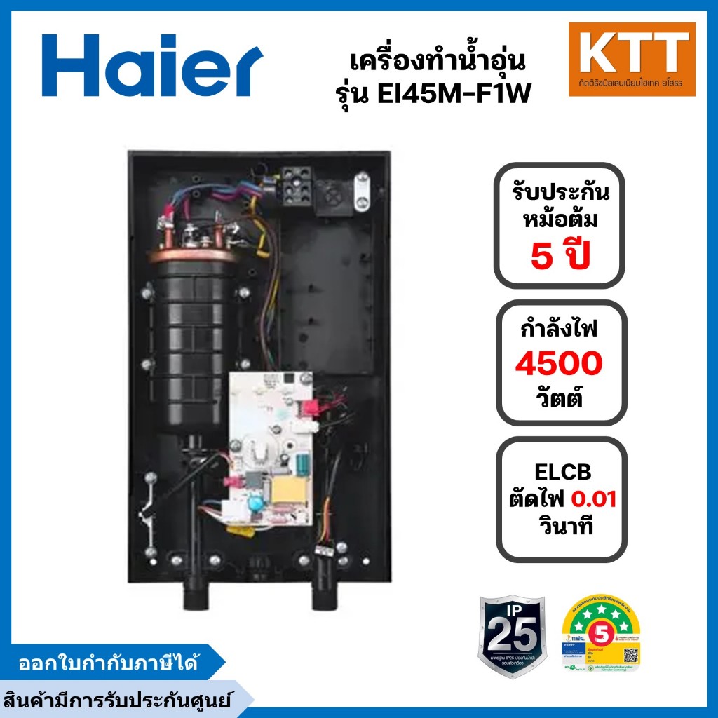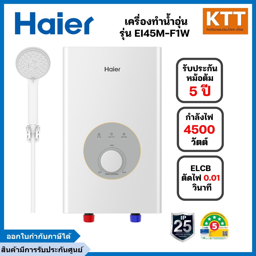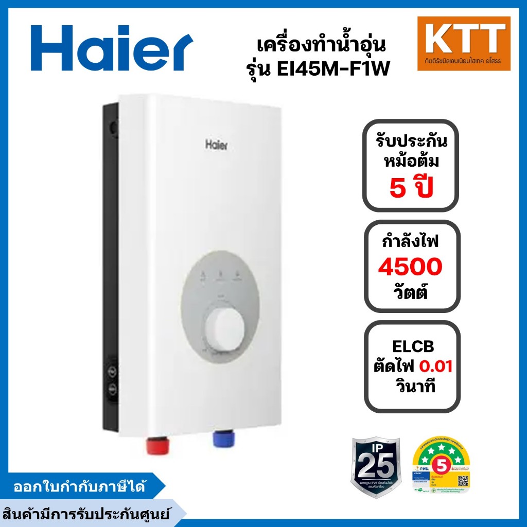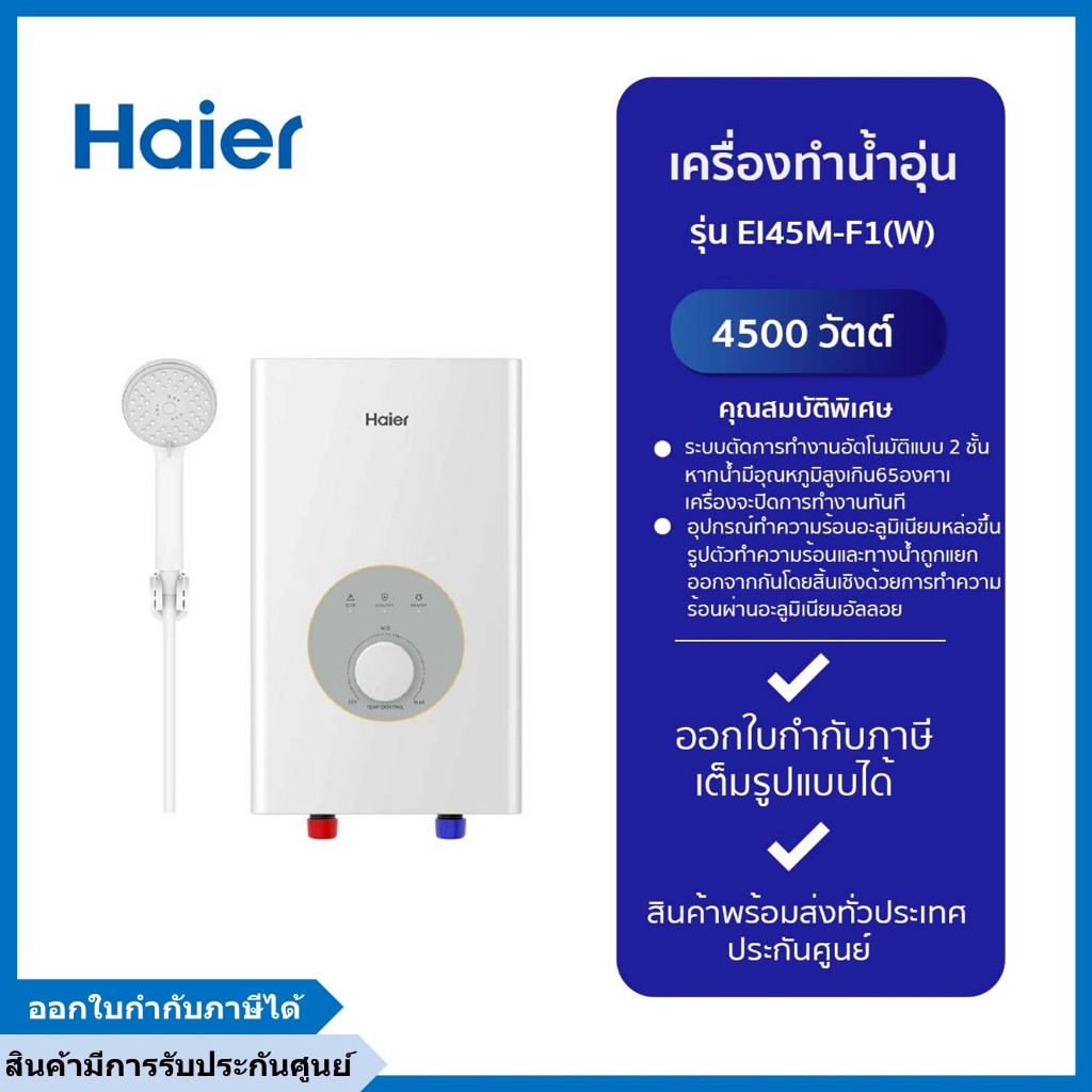 Haier เครื่องทำน้ำอุ่น ขนาด 4,500 วัตต์ รุ่น EI45M-F1W ระบบตัดไฟอัตโนมัติ