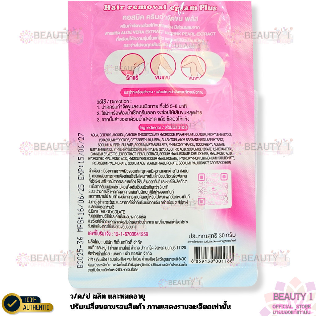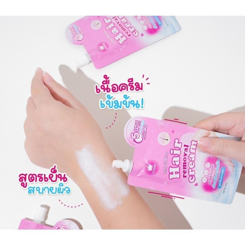 3 ซอง ครีมกำจัดขนคอสมิค COSMIC HAIR REMOVAL CREAM สูตรอ่อนโยน ปริมาณ 30 กรัม x 3