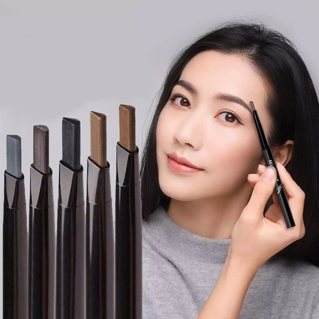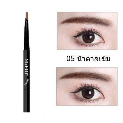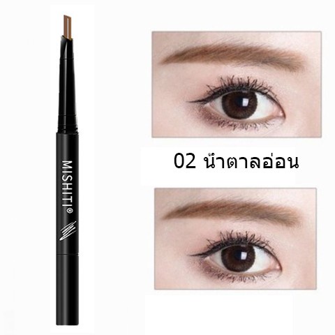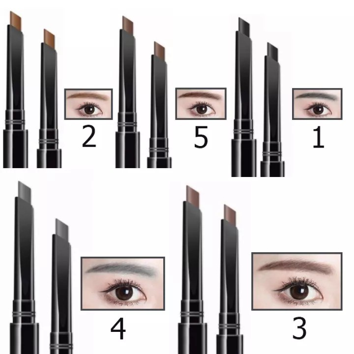 ดินสอเขียนคิ้ว กันน้ำ ดินสอเขียนคิ้วแบบหมุน 2 in 1 มีแปรงปัดคิ้วในตัว มี 5 สีให้เลือก ทนทาน(053)
