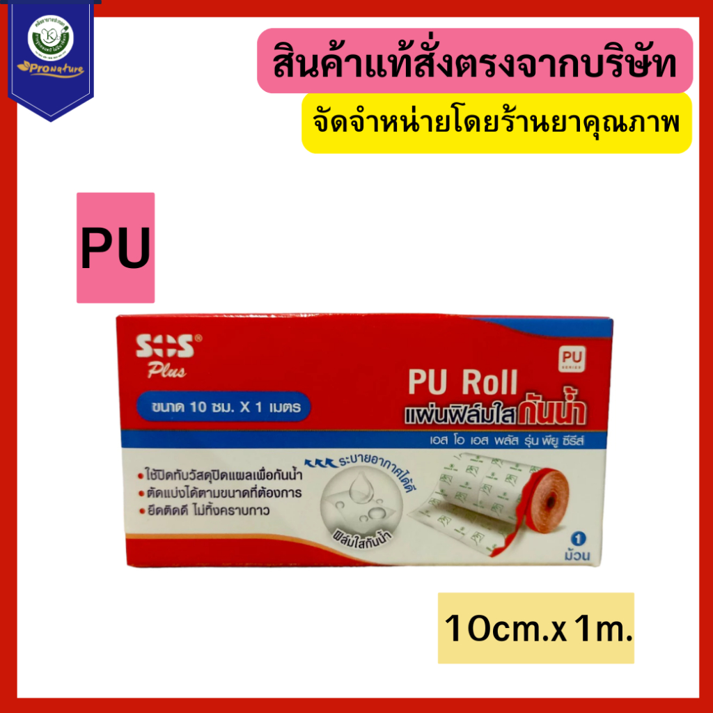 SOS PU ROII แผ่นฟิล์มใสกันน้ำ ใช้ปิดแผล]ขนาด 10ซม.x1 เมตร รหัส 9333 Exp.3/30