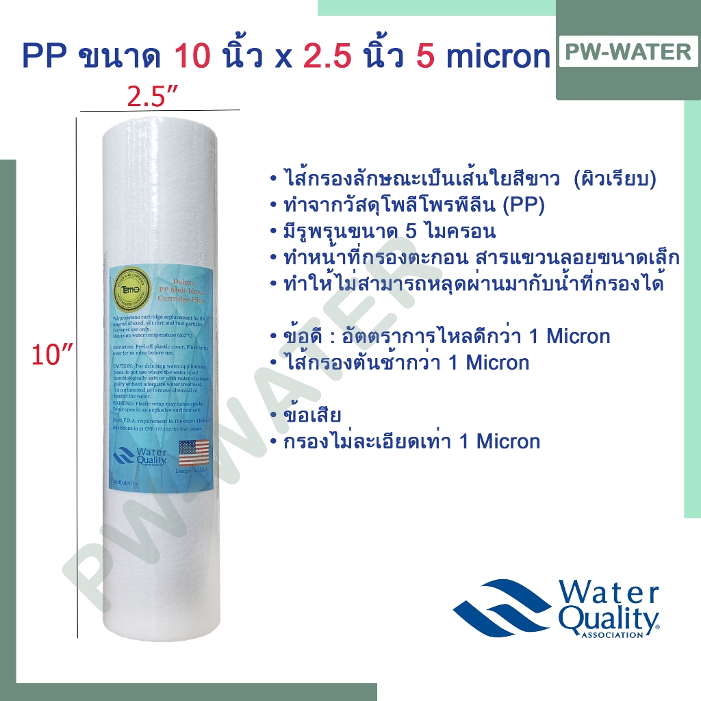 ไส้กรองน้ำ PP 5 ไมครอน Tema ไส้กรองหยาบพีพี 10 นิ้ว (จำนวนว 5 ชิ้น)