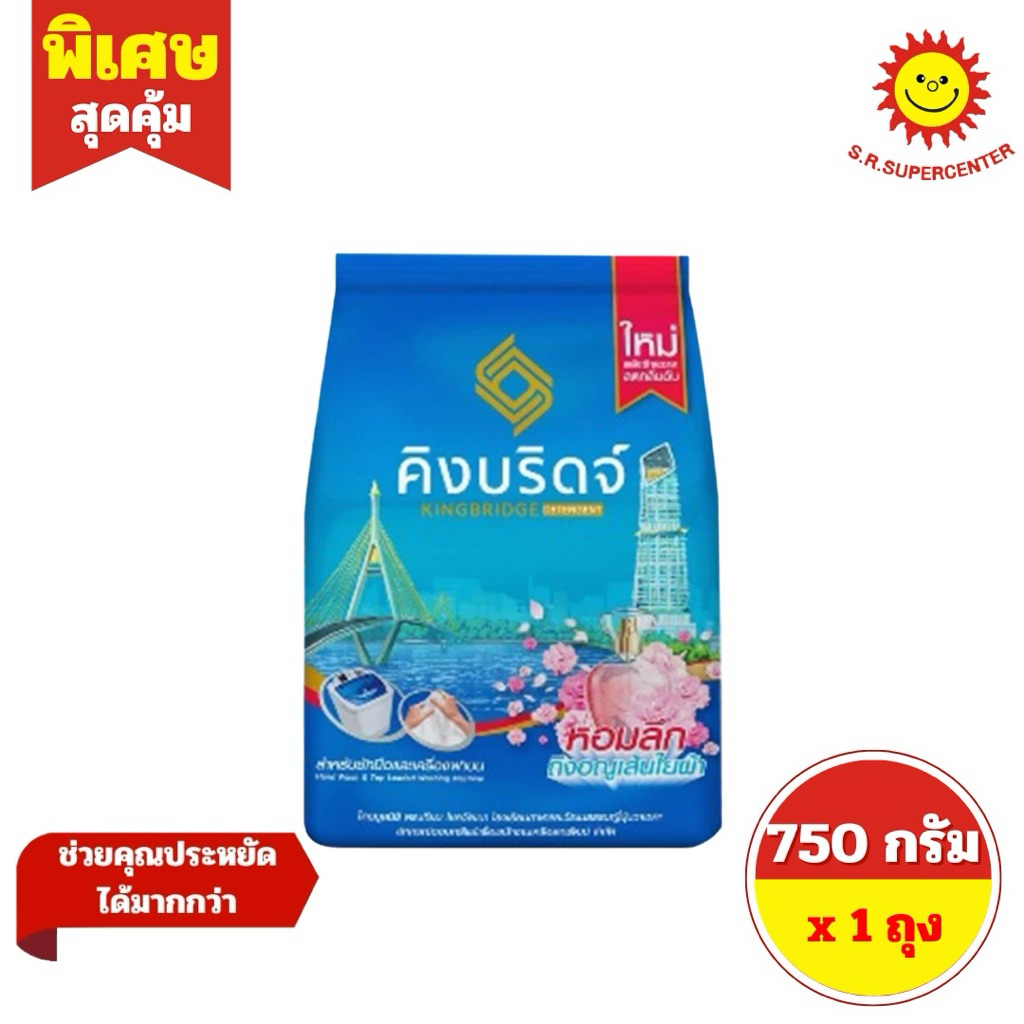 [ 1 ถุง ] King Bridge คิงบริดจ์ ผงซักฟอก ขนาด 750 กรัม