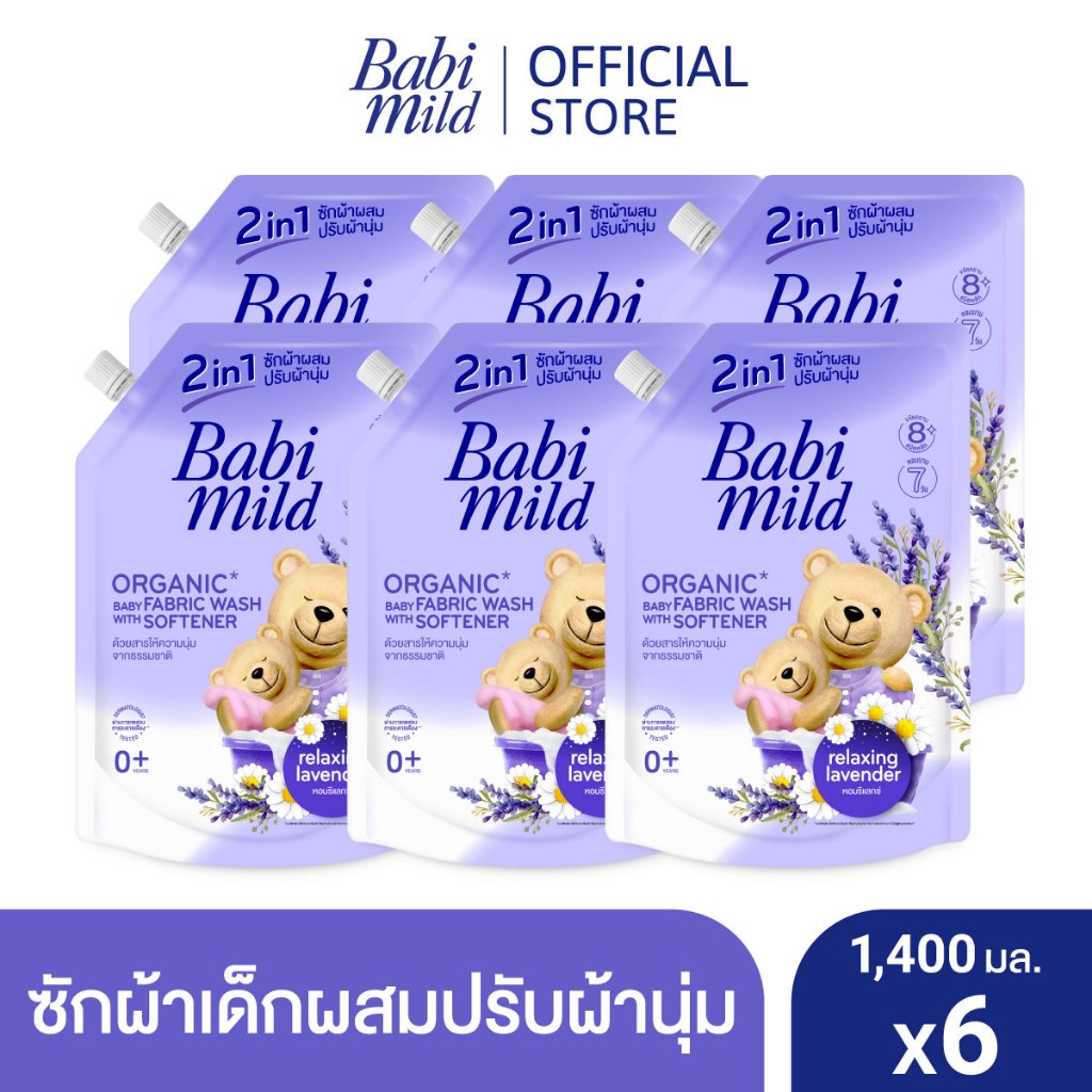 เบบี้มายด์ น้ำยาซักผ้าเด็ก 2อิน1 รีแลกซ์ซิ่ง ลาเวนเดอร์ 1,400มล x6/Babi Mild 2in1 Fabric Wash Relaxing Lavender 1400mlx6