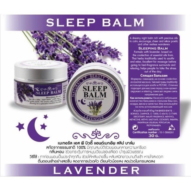 ลดเพิ่ม 30% Sleep Balm LAVENDER NATURAL S.P. BEAUTY & MAKUP SLEEP BALM บาล์มทาก่อนนอน หลับสบาย