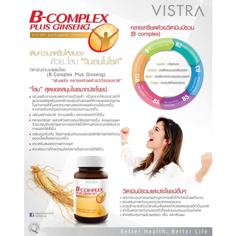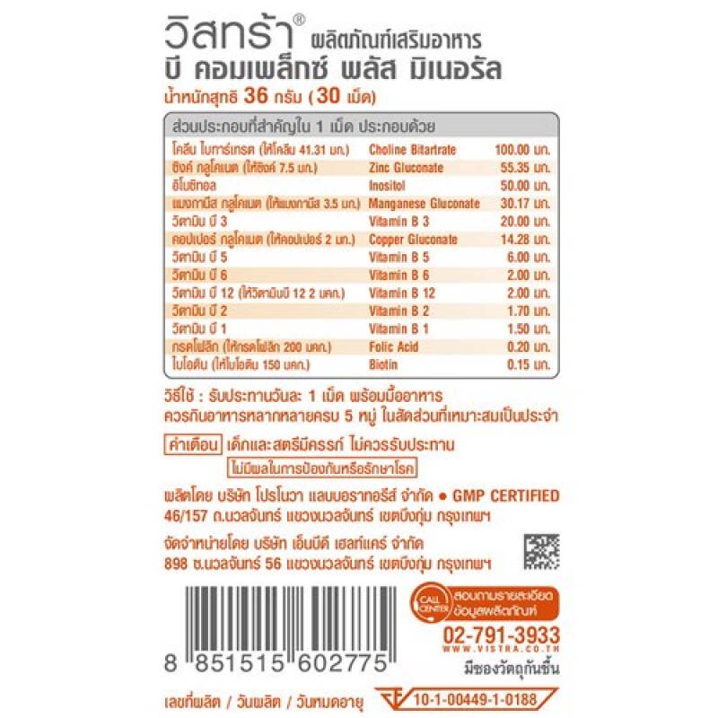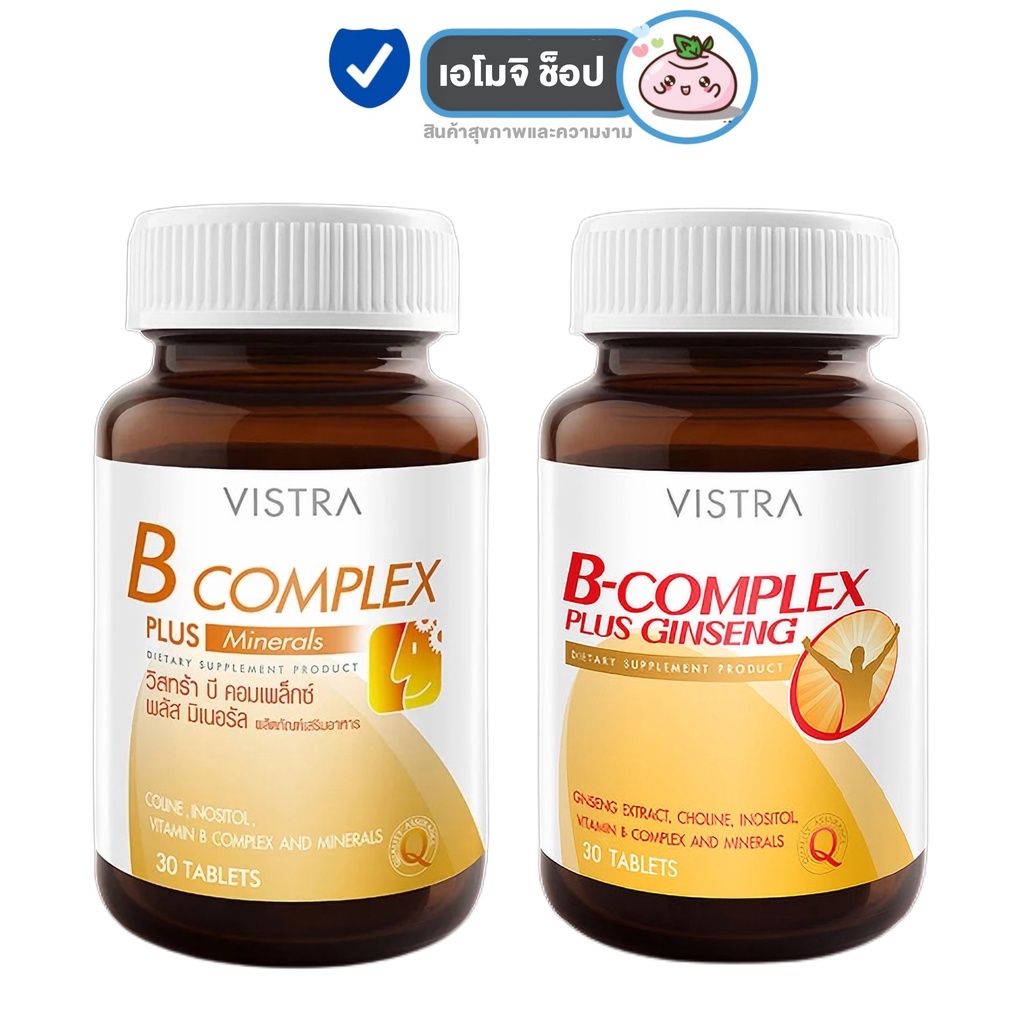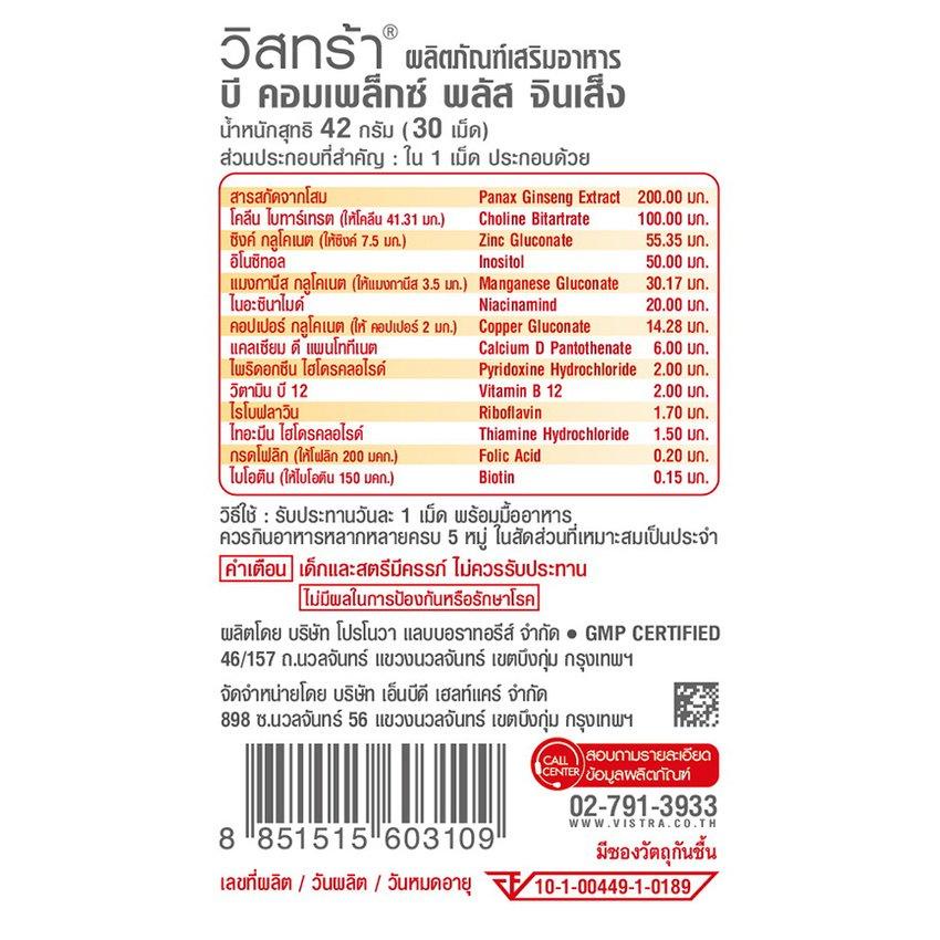 Vistra B Complex Plus Minerals /Vistra B Complex Plus Ginseng วิสทร้า บี ค อมเพล็กซ์ พลัส มิเนรัล/จินเส็ง [30 เม็ด]