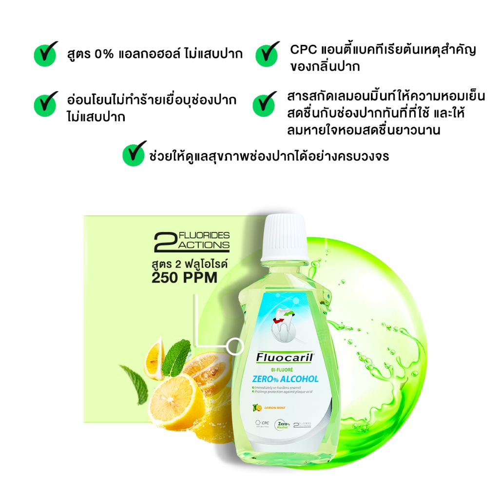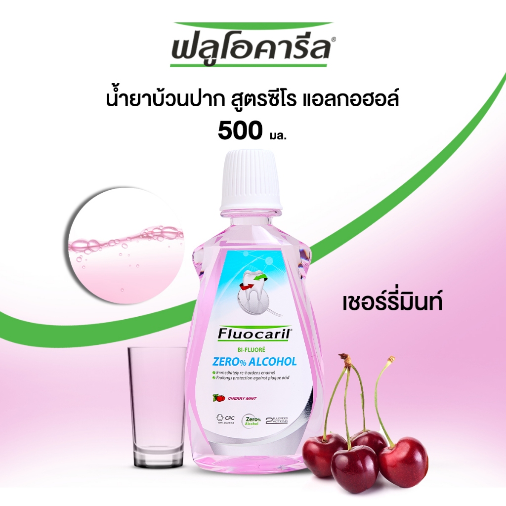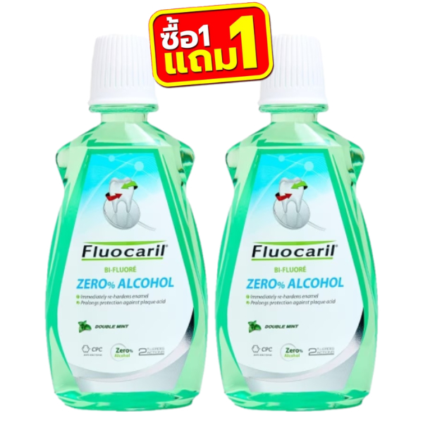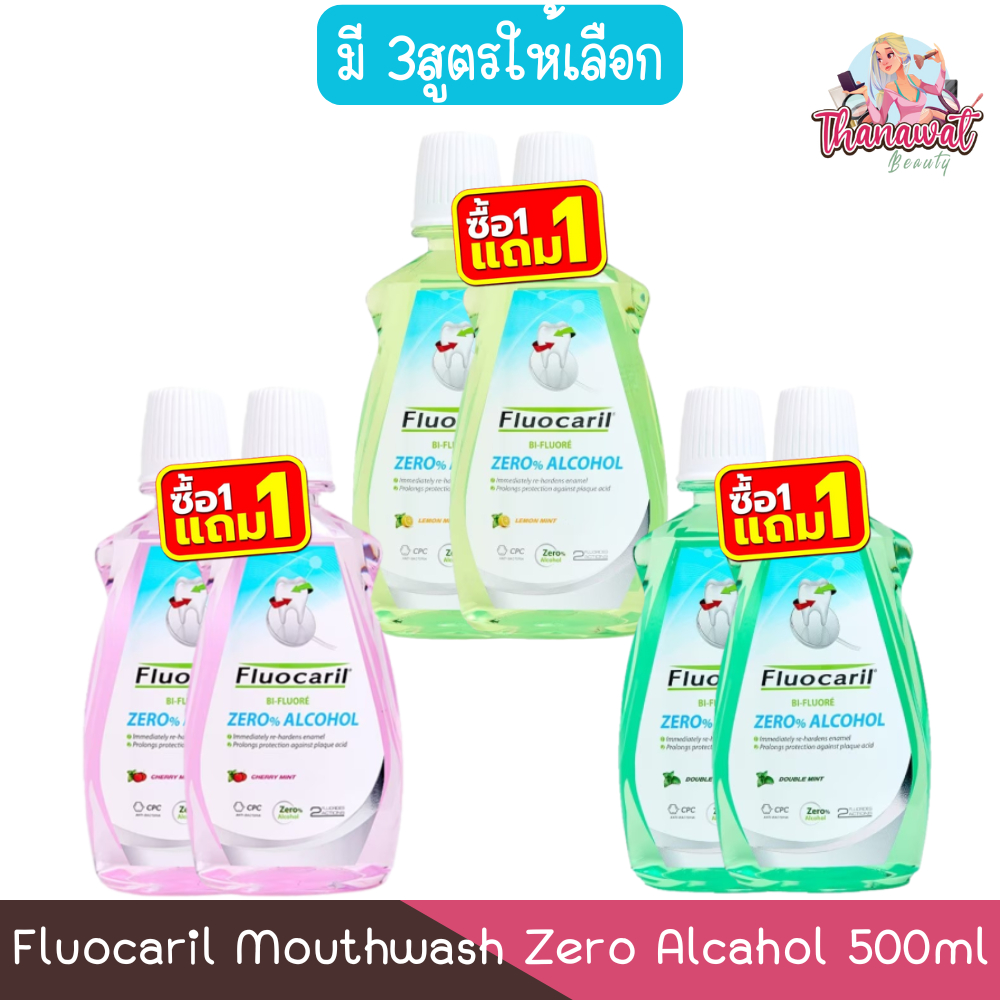 (1แถม1) Fluocaril Mouthwash Zero Alcahol 500ml ฟลูโอคารีล น้ำยาบ้วนปาก ซีโร่ แอลกอฮอล์ 500มล